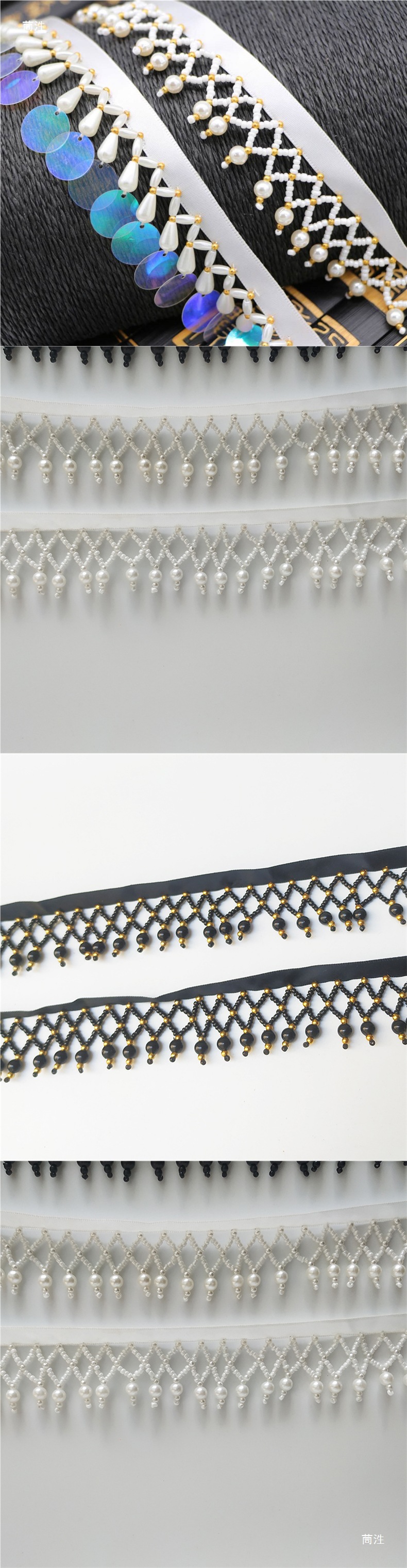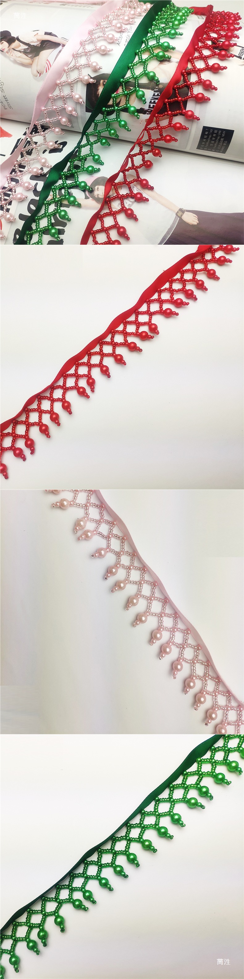 グリッドライスビーズタッセル DIY 衣装パフォーマンス衣装漢服パールベルト靴の端手作りビーズレース