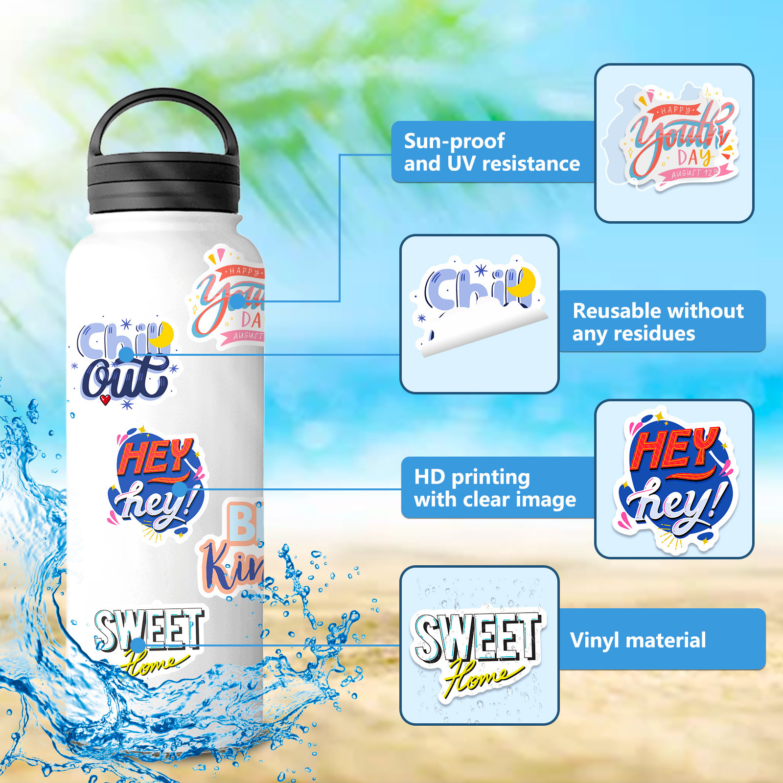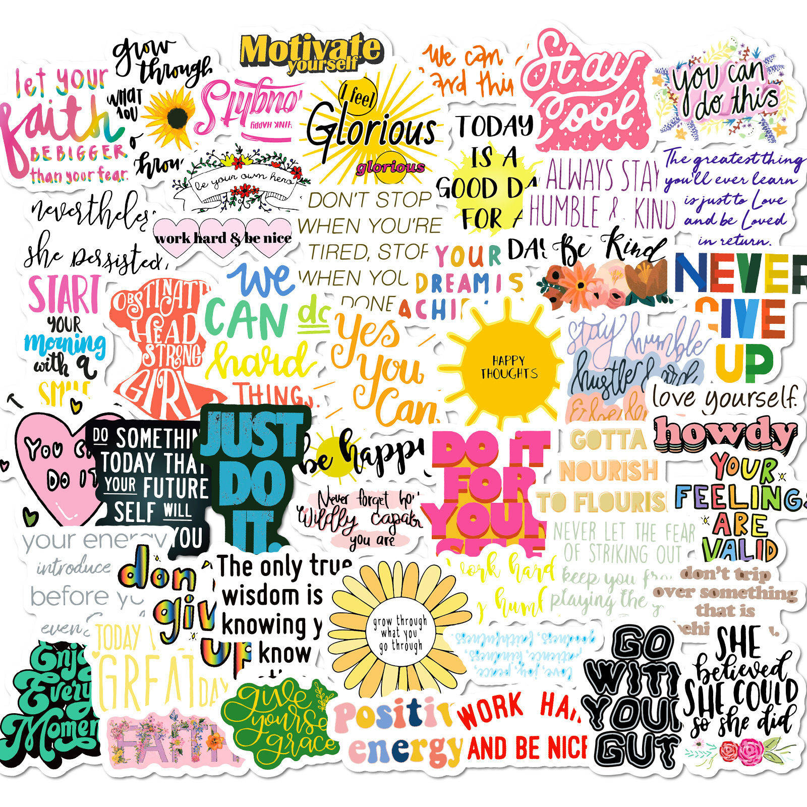新しい聖書ステッカー 50 枚、創造的なポジティブなエネルギーのテキスト、短い文章、インスピレーションを与える英語の文章、防水ノートブックステッカー