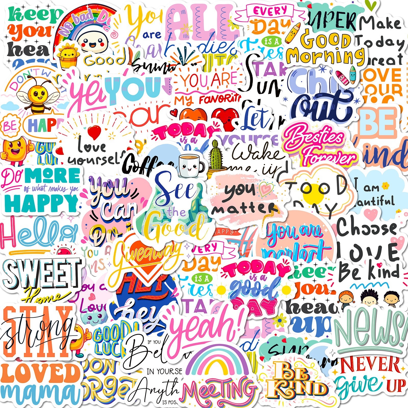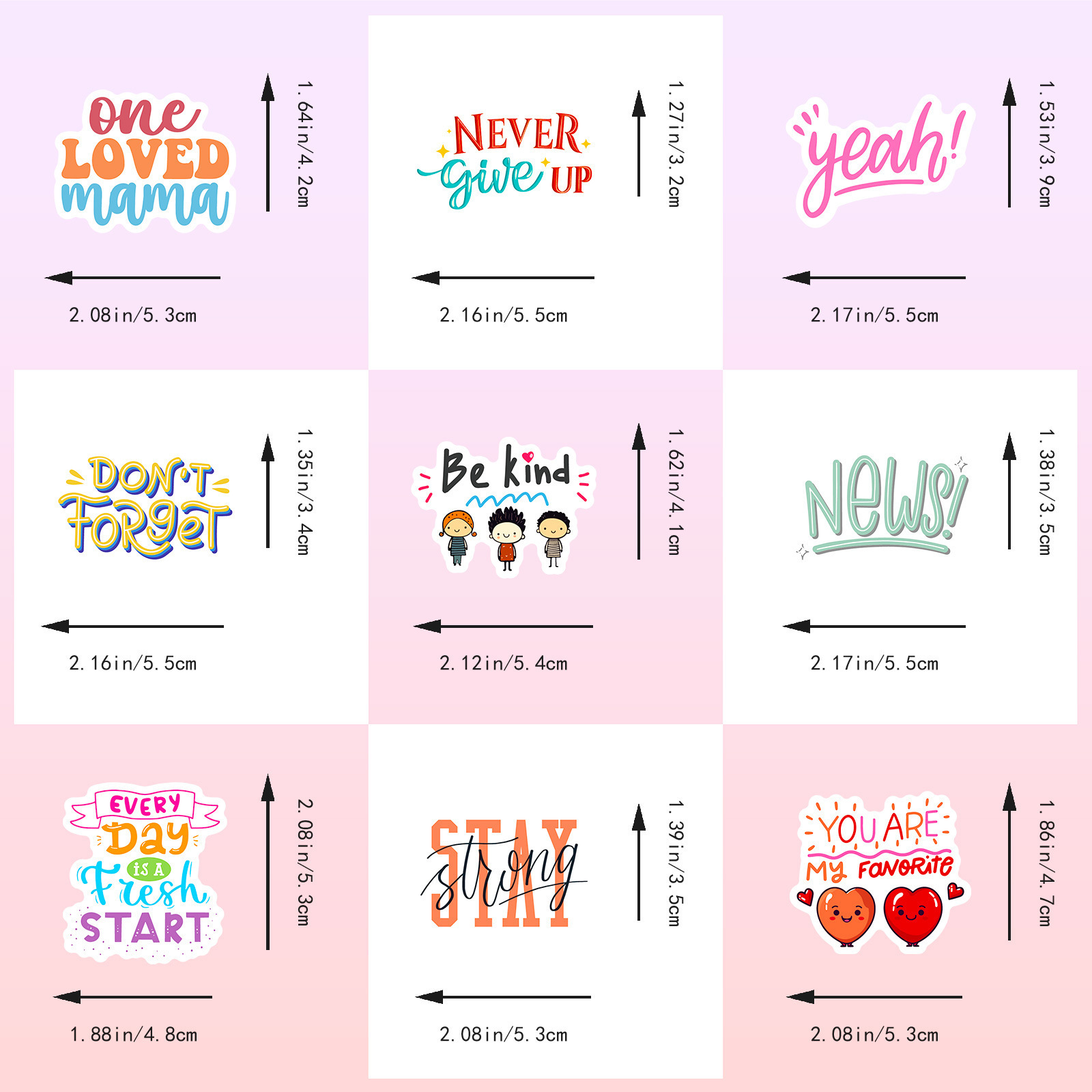 国境を越えた新しい自己肯定的な英語落書きステッカー 50 枚、小さな新鮮なインかわいいテキストラベルハンドブックステッカー