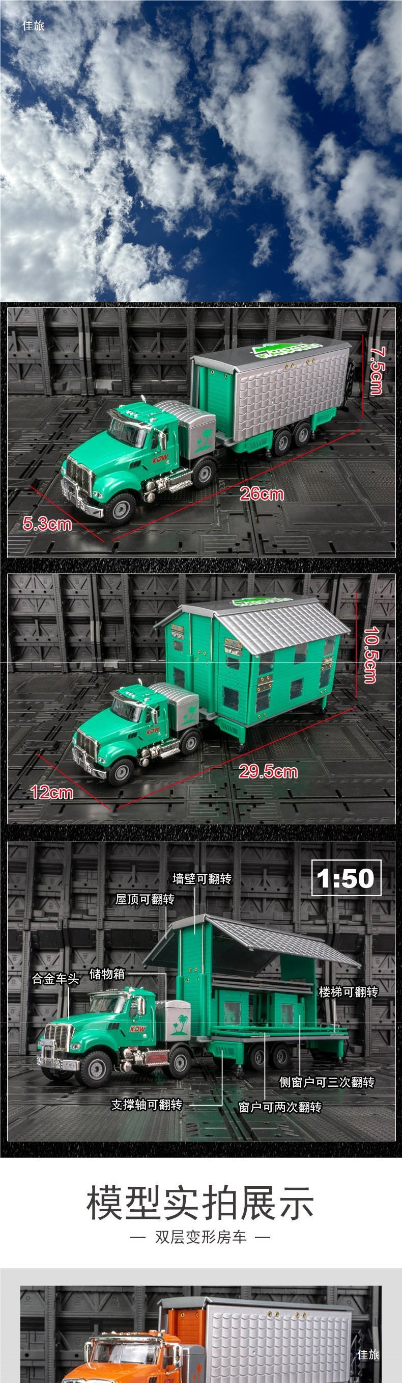 新しいエンジニアリング車両 RV モデル高級旅行車改造折りたたみ変形合金モデルおもちゃの車のモデル