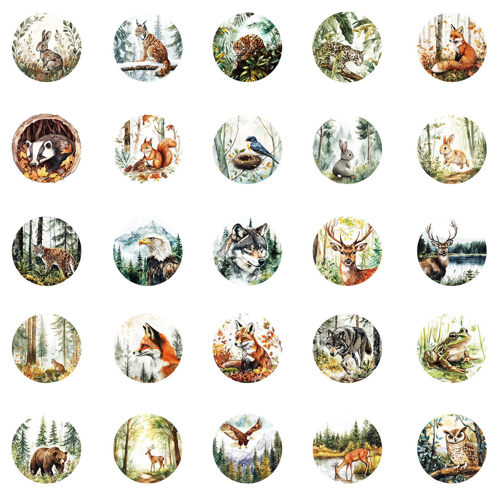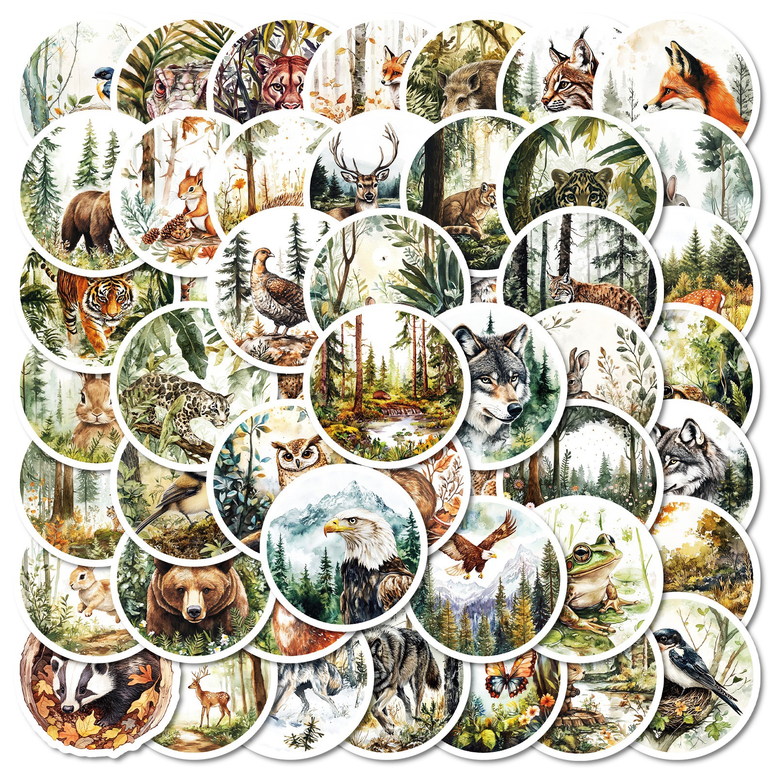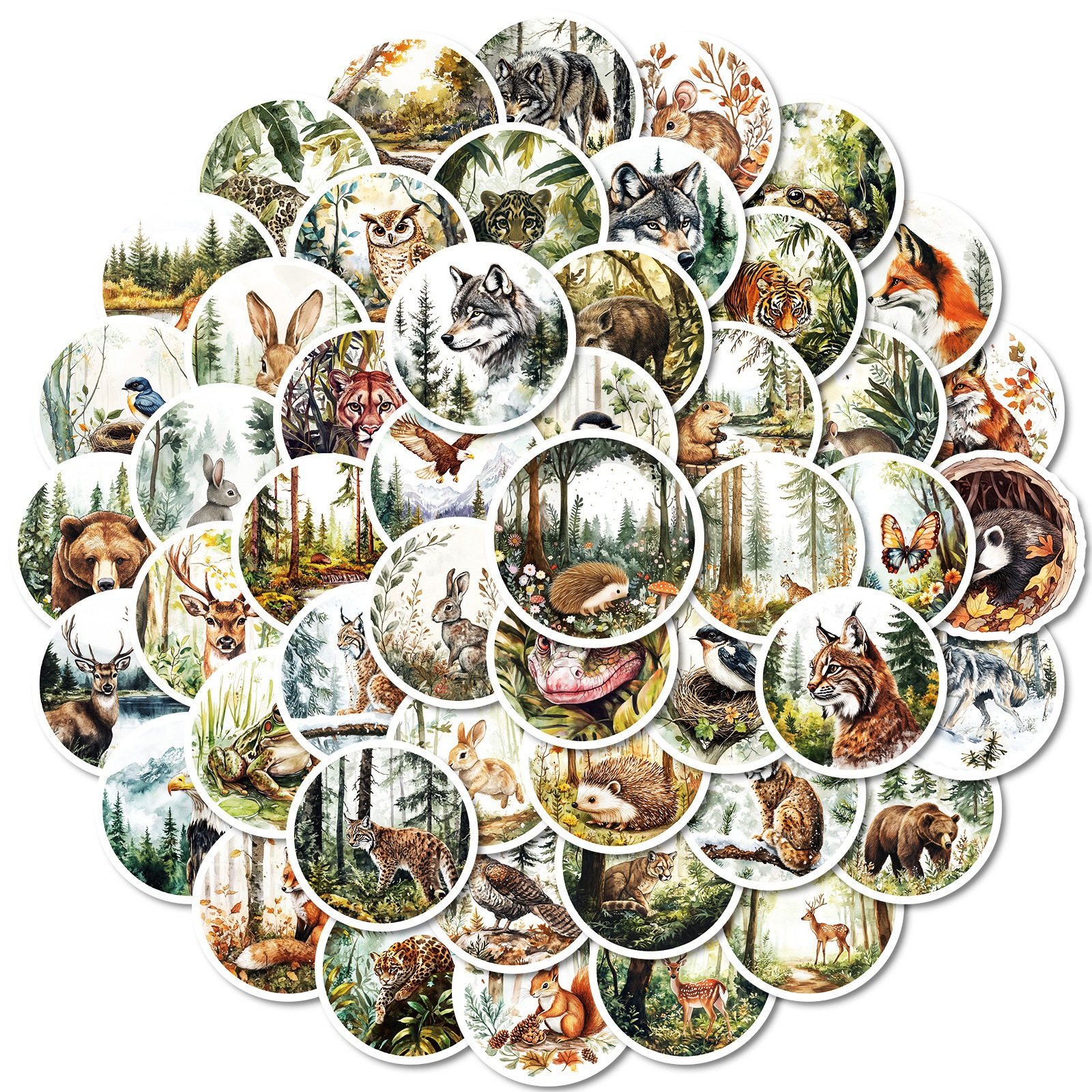 50 枚の売れ筋ラウンドレトロスタイル水彩動物落書きステッカータイガーフォックスウサギ非繰り返しステッカー