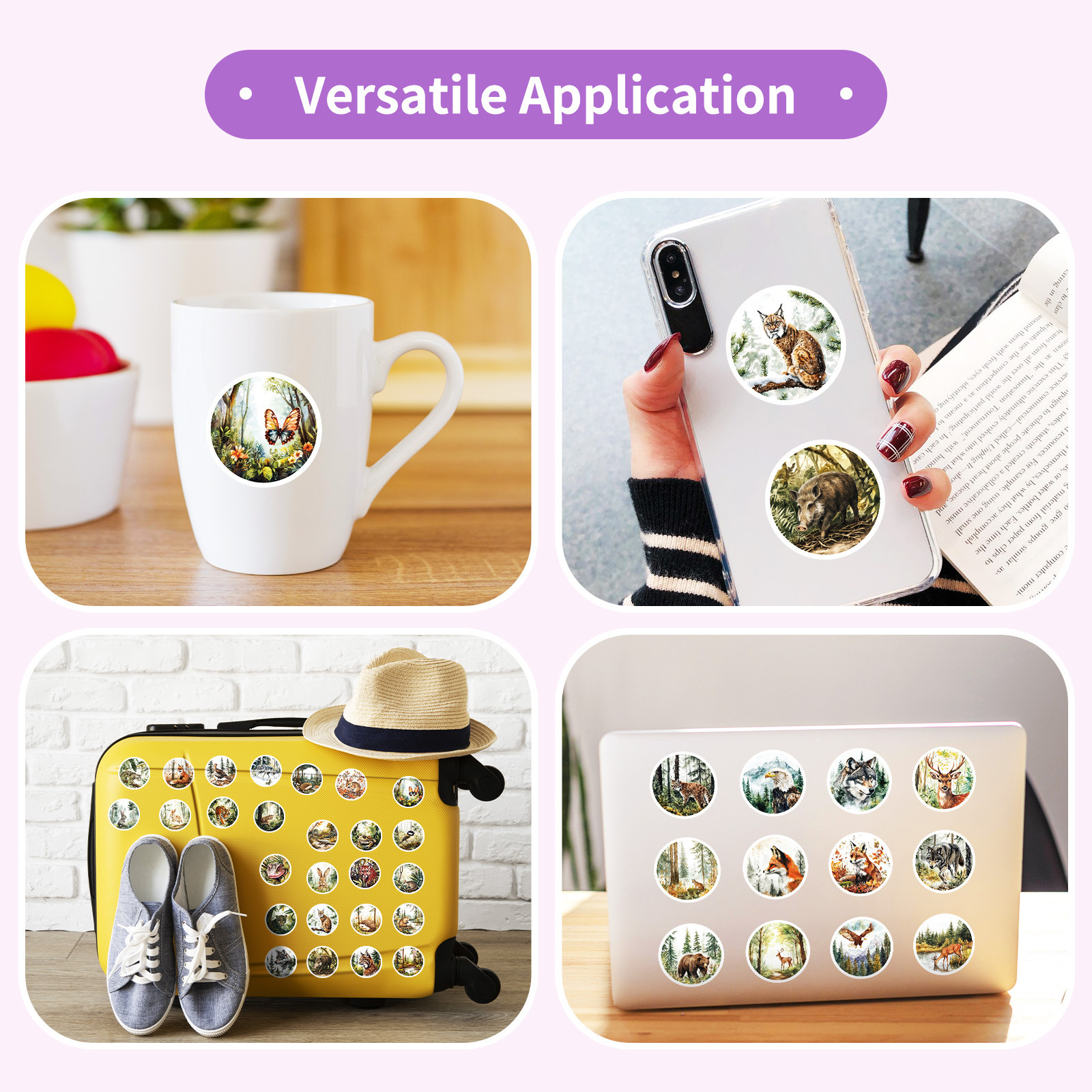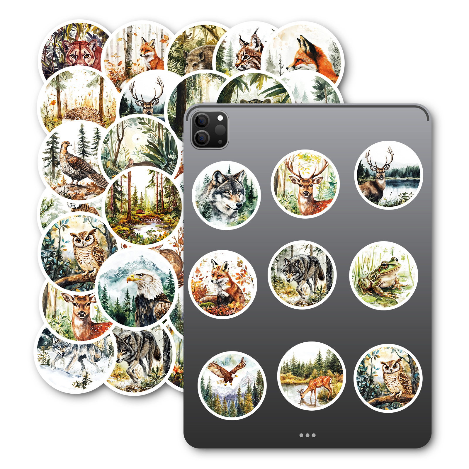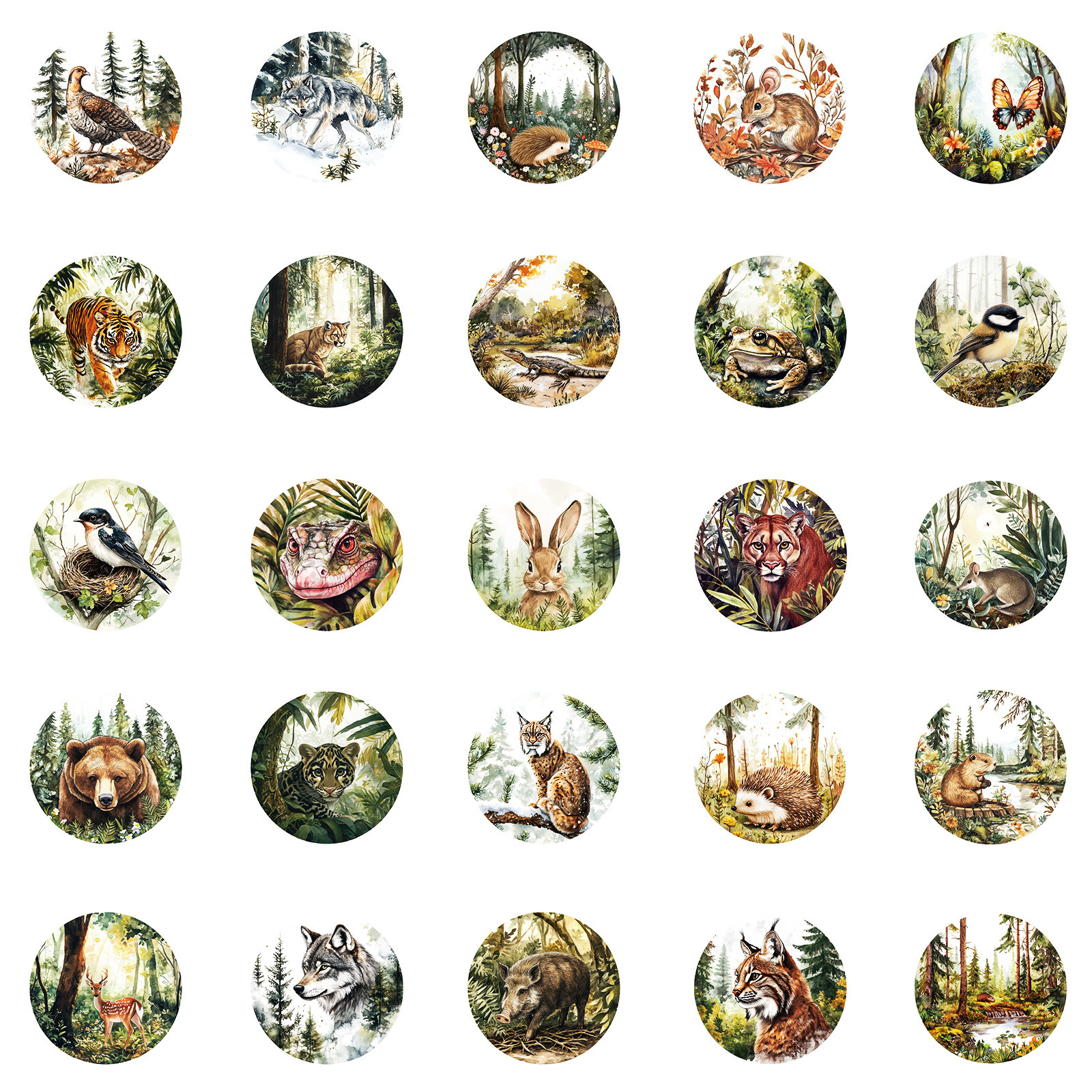 50 枚の売れ筋ラウンドレトロスタイル水彩動物落書きステッカータイガーフォックスウサギ非繰り返しステッカー