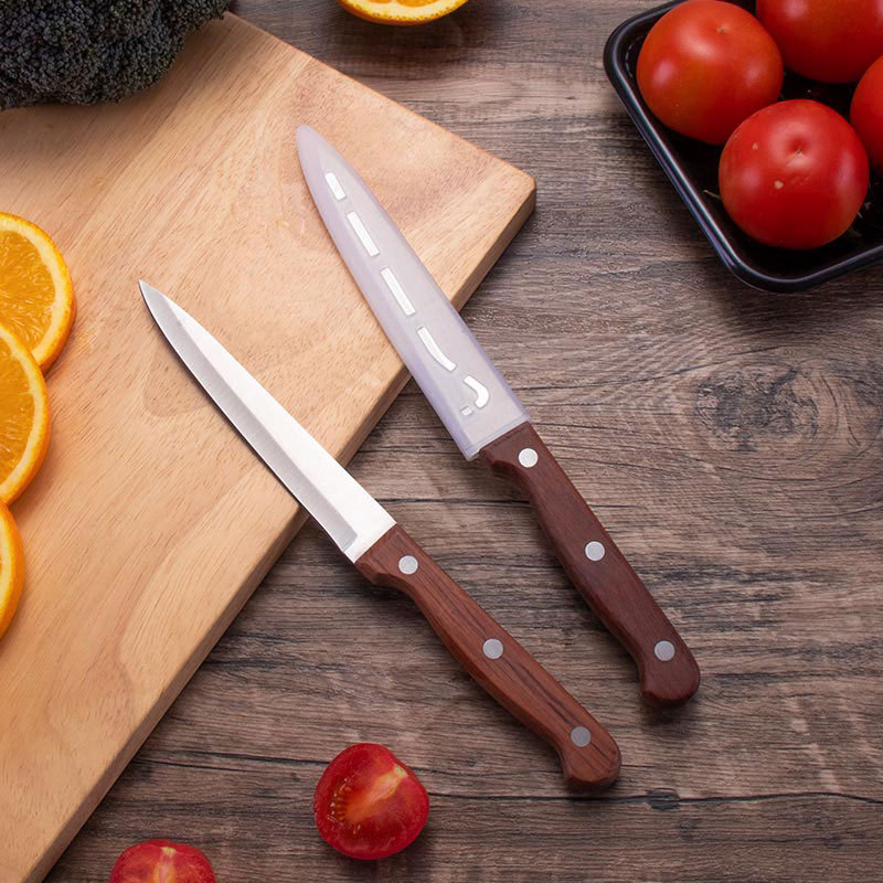超锋利不锈钢水果刀家用果皮刀中式花梨木削皮刀万用刀含刀套批发