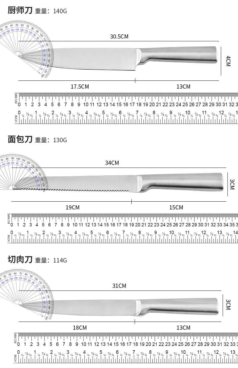 不锈钢刀具直柄空心柄刀具套装厨房套刀全焊钢柄切肉水果厨师刀