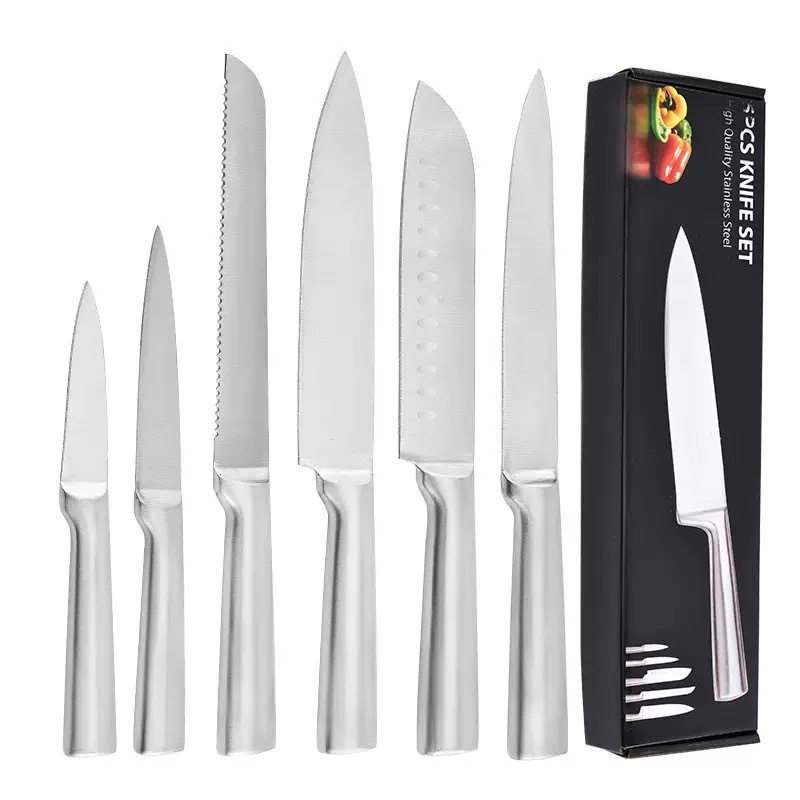 ステンレス凹点柄中空柄刃物セットキッチンギフトセット全溶接鋼柄肉切り果物シェフナイフ