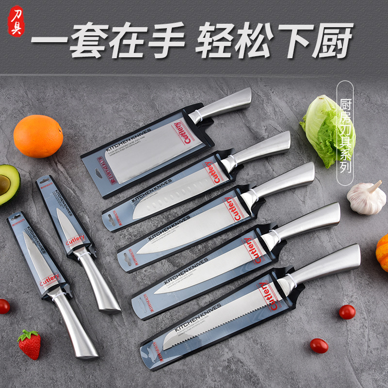 厨房全不锈钢礼品带刀套刀具6件套家用菜刀砍骨刀水果刀套装