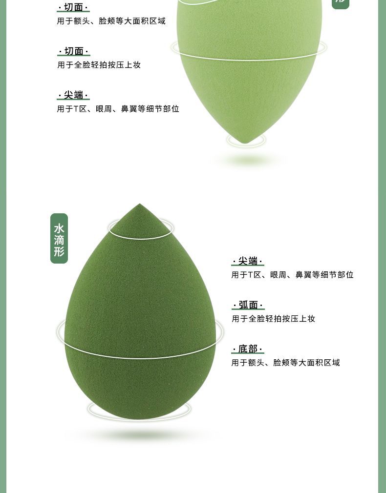 メイクアップスポンジ、個別包装、乾湿両用、粉を吸わない、メイクスポンジ、ハトムギ型、水滴型、斜めカットメイクスポンジ