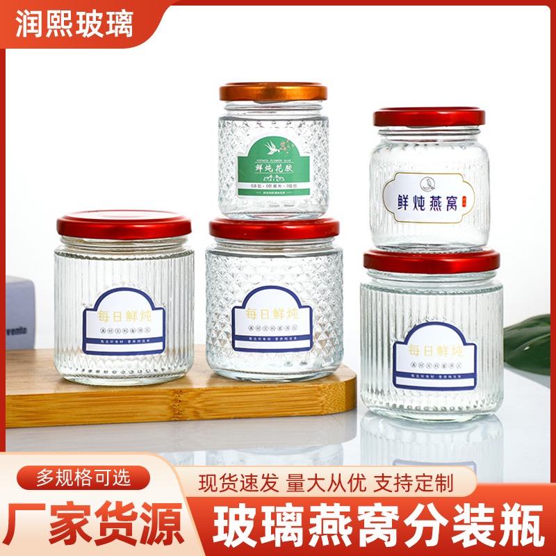 スポットツバメの巣ボトル、高温耐性密封ガラスボトル、携帯用大口蒸し可能なヒレ魚蜂蜜ボトル