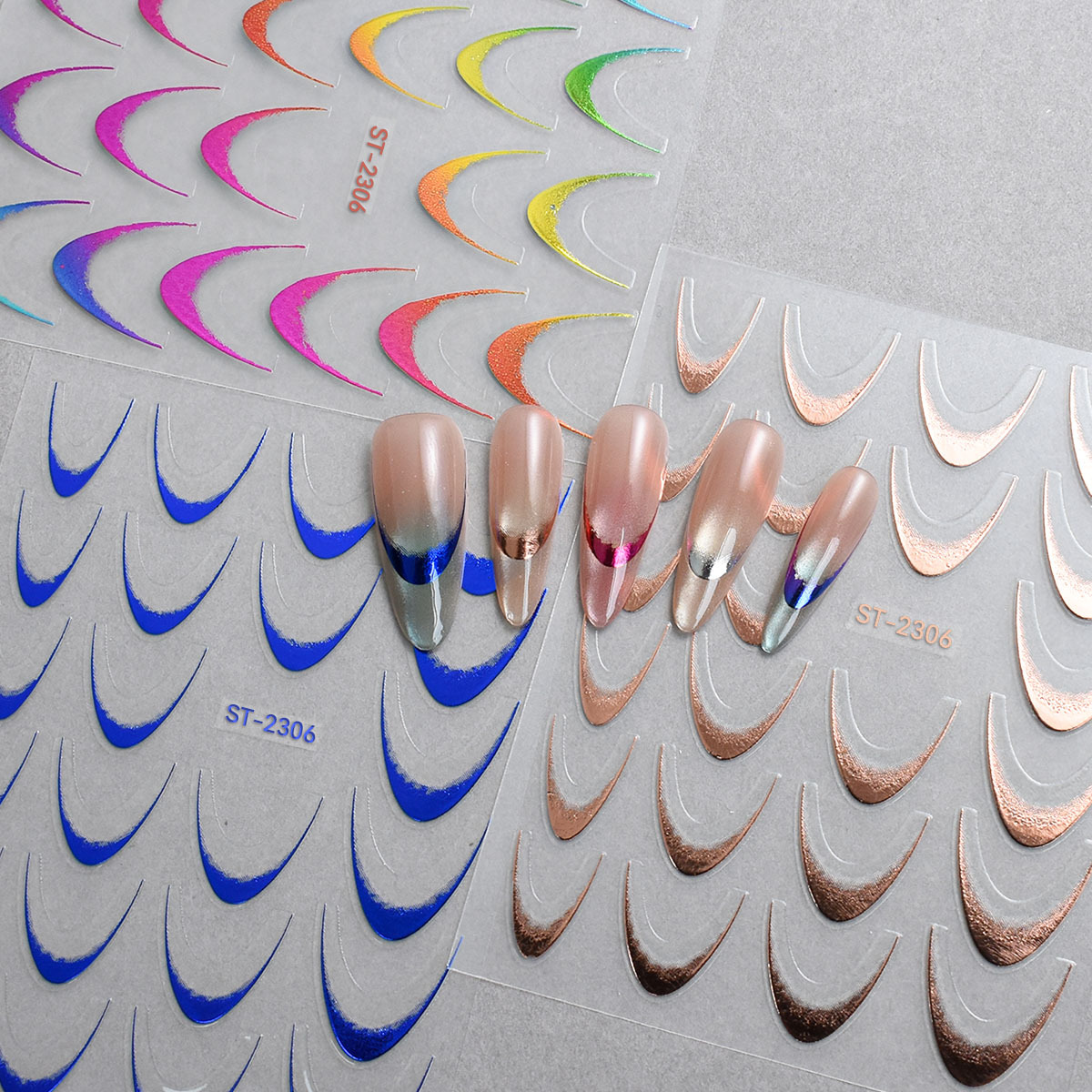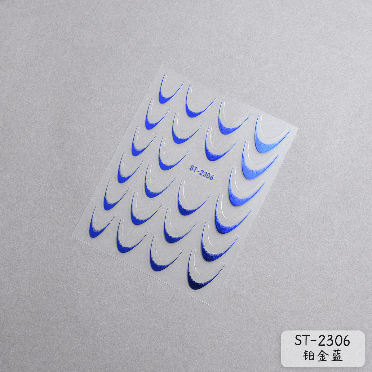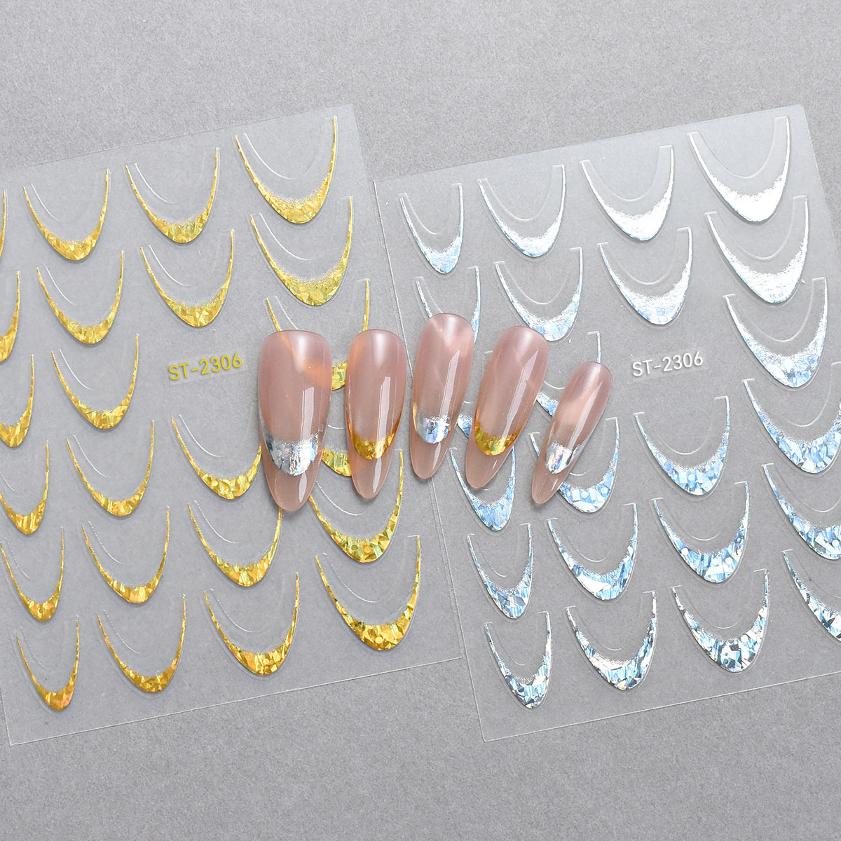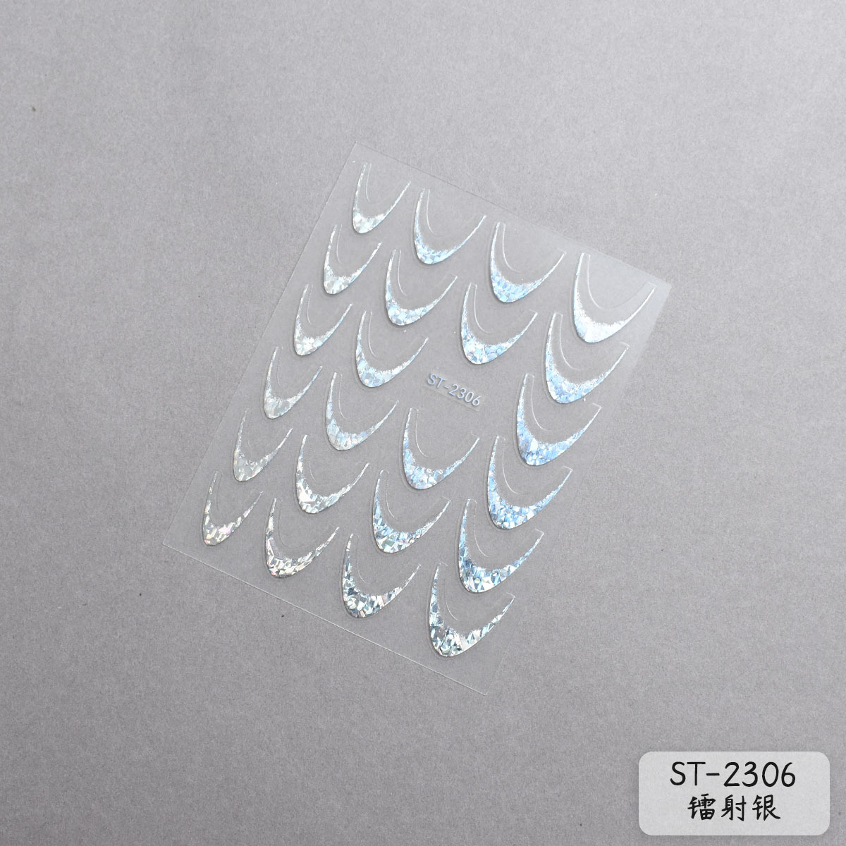 ネット赤砕ドリルネイルシールキラキラ銀ブロック曲線フレンチストライプ曲線軽贅沢爪浮き彫りネイルシール