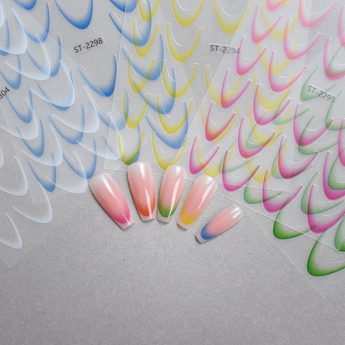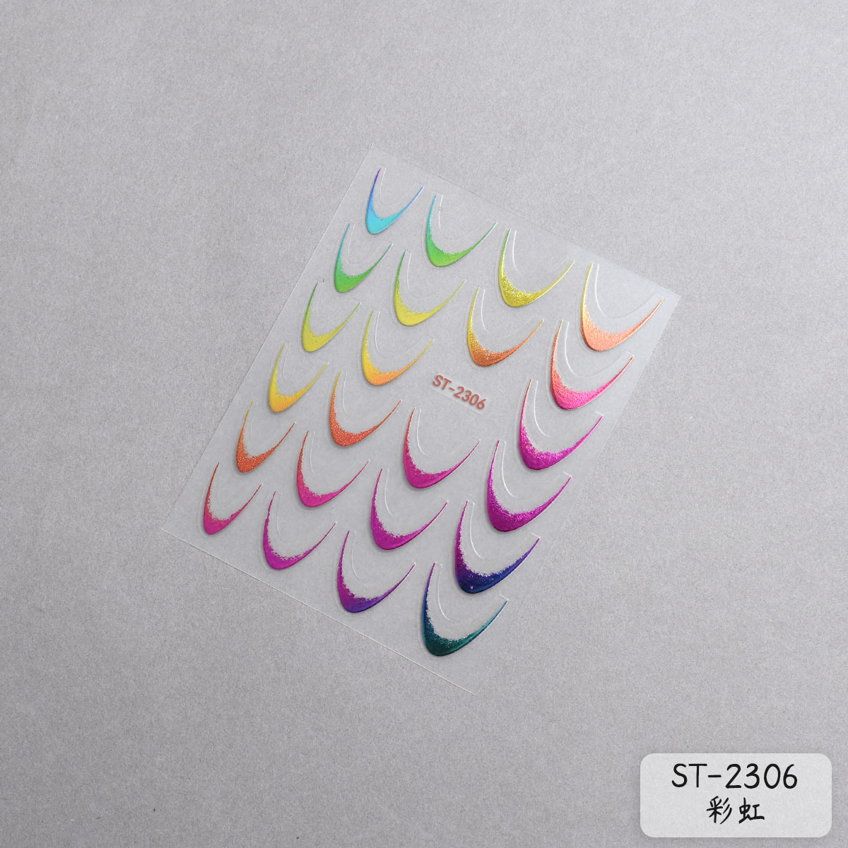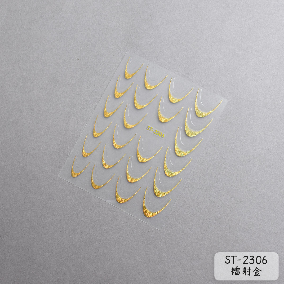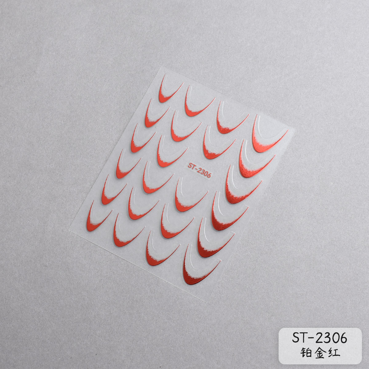 ネット赤砕ドリルネイルシールキラキラ銀ブロック曲線フレンチストライプ曲線軽贅沢爪浮き彫りネイルシール