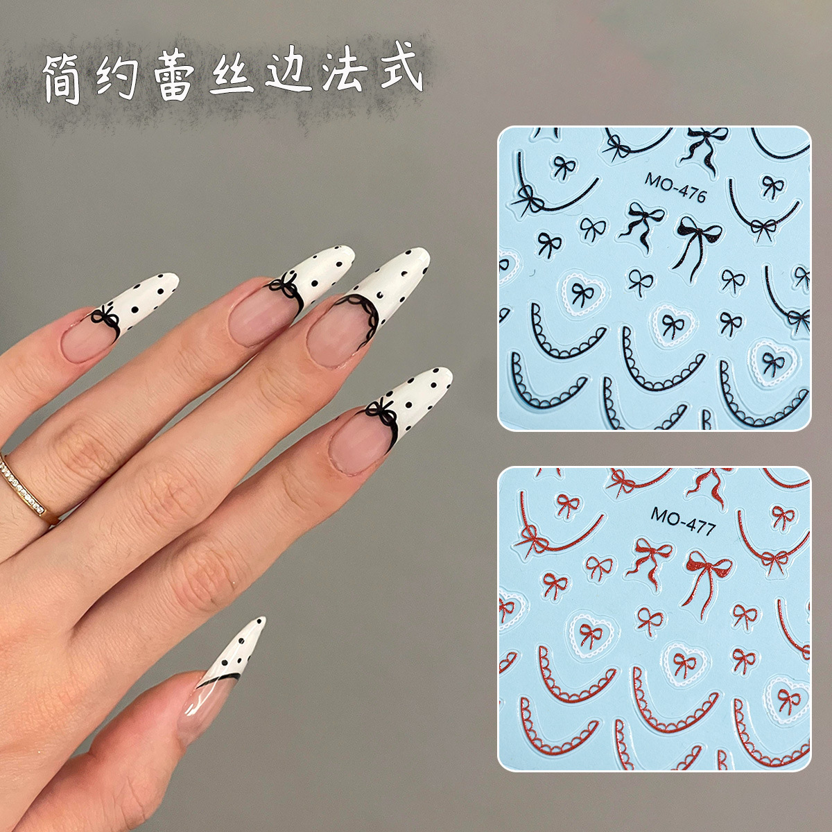 ネットの赤いレースのフランスの辺のネイルシールの赤い本の熱い金の白黒のレースの車のセンチの赤いINSの風の蝶結び