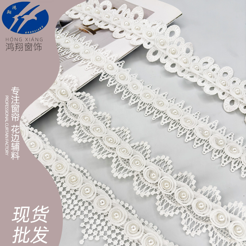 白色水溶花边镂空珍珠钉珠装饰边裙子窗帘花边服装辅料刺绣辅料