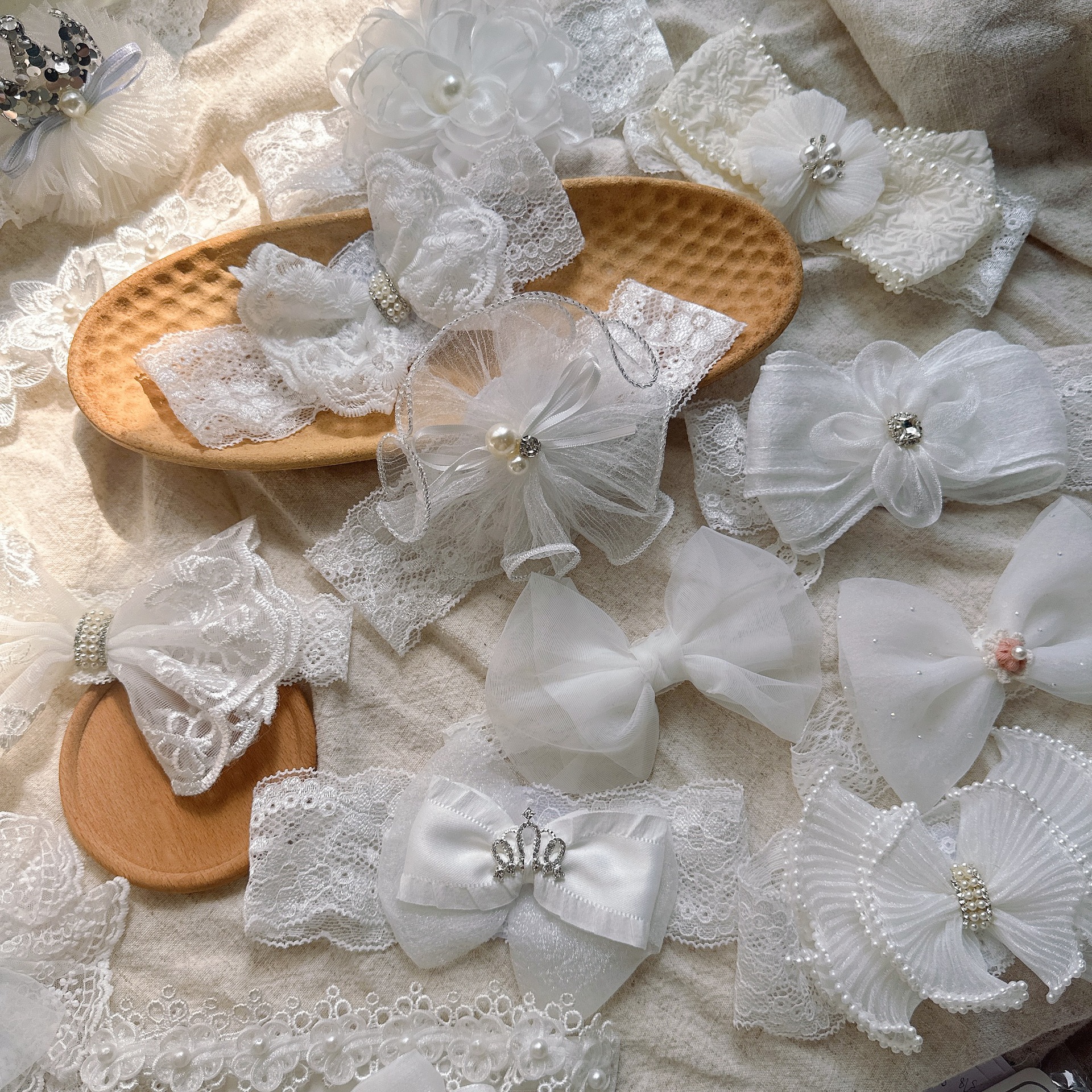 白い子供の髪飾り花蝶結び真珠糸ドレスセットの髪飾り赤ちゃん満月百日満