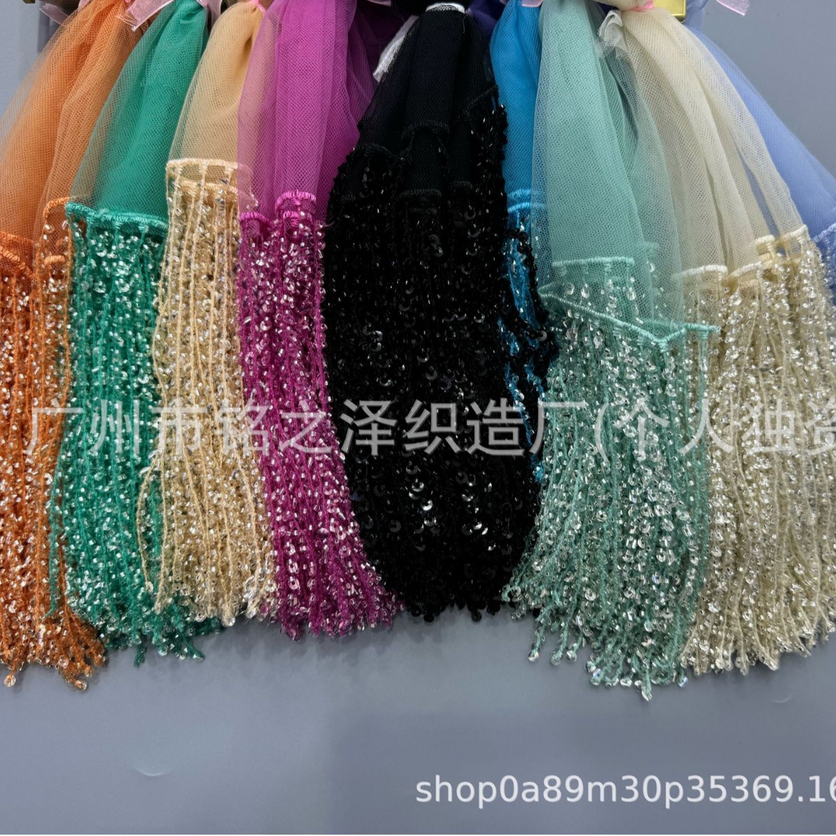 現物直売機は透明なガーゼを刺繍してレースのひもをつけて各種の大きさを挿して真珠の漢服の靴の帽子のレースをつないで配合します。