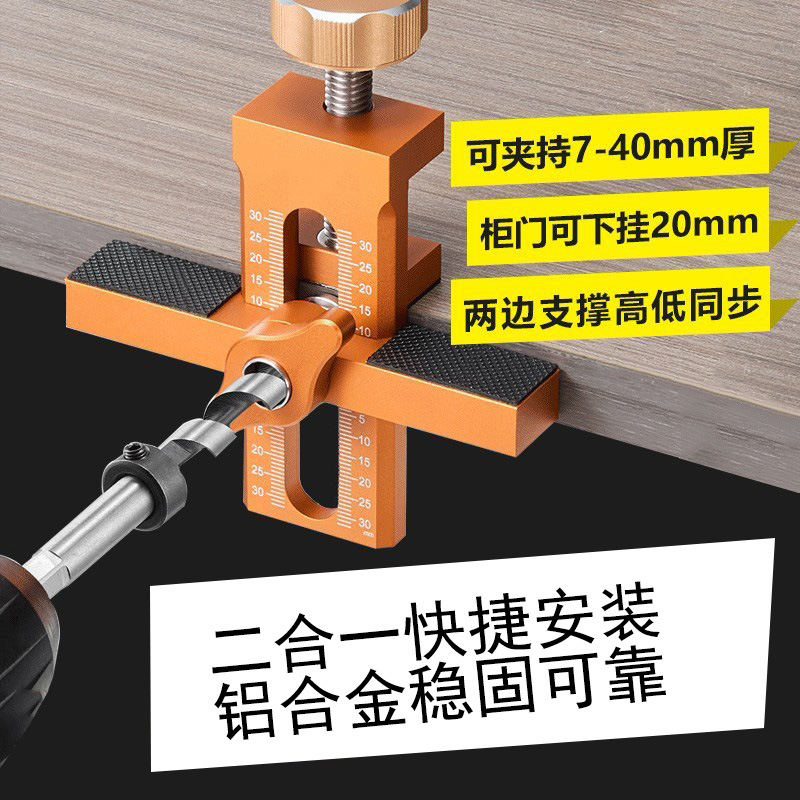 キャビネットドア取付補助器木工固定キャビネットドア神器アルミ合金快速位置決め穴開けツール