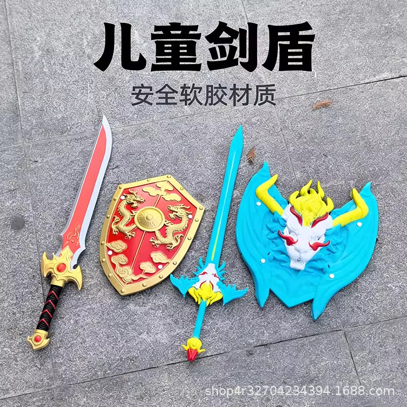 宝剑盾牌儿童玩具男孩PU软胶四大神兽表演道具仿真刀剑武器模型