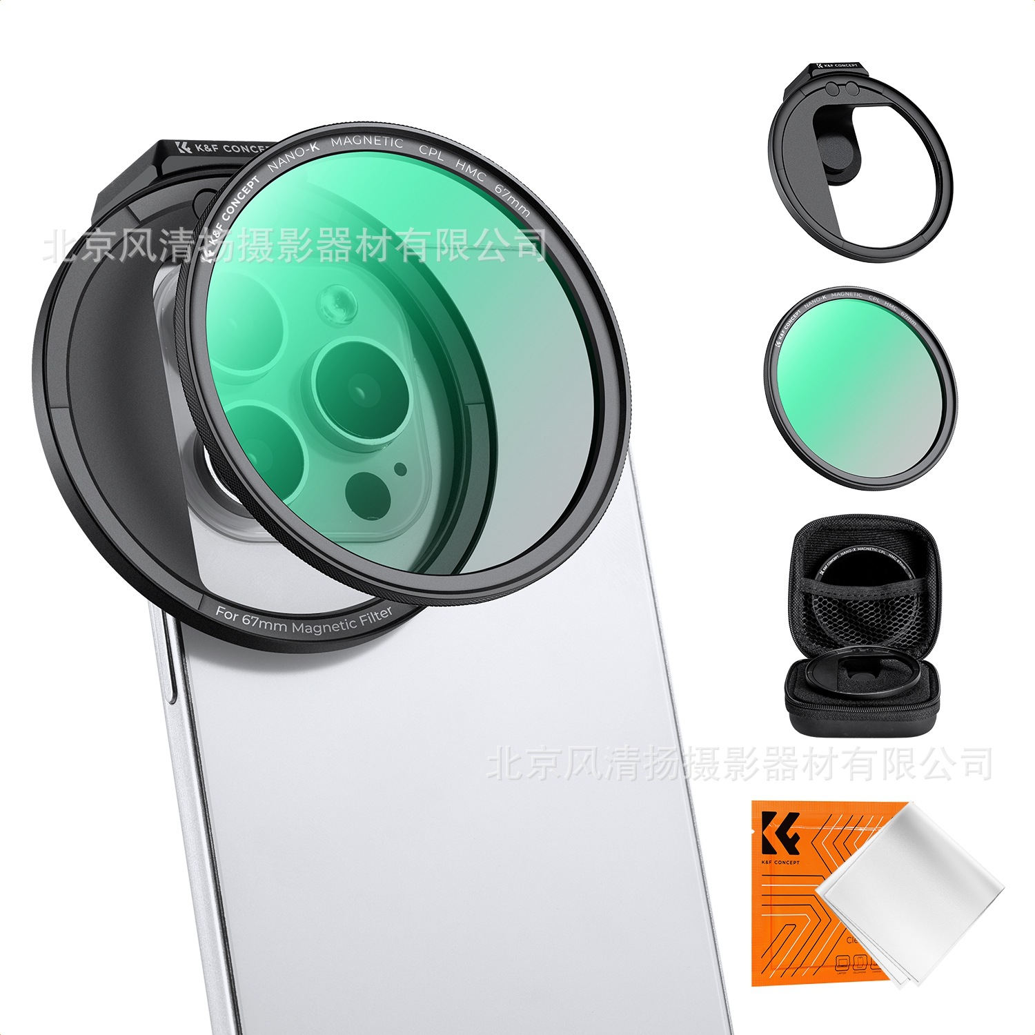 Zhuoer K&F Concept 67mm 磁気フィルター携帯電話クリップ調整可能な ND2-32 磁気フィルターレンズクリップ