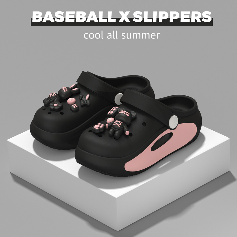 2025 かわいい漫画汗をかく子犬下駄女性の夏の新しい厚底滑り止めアウターウェア厚いつま先スリッパ