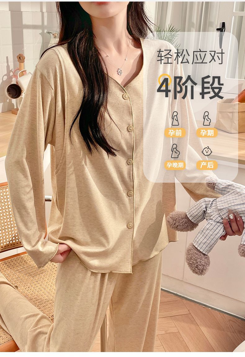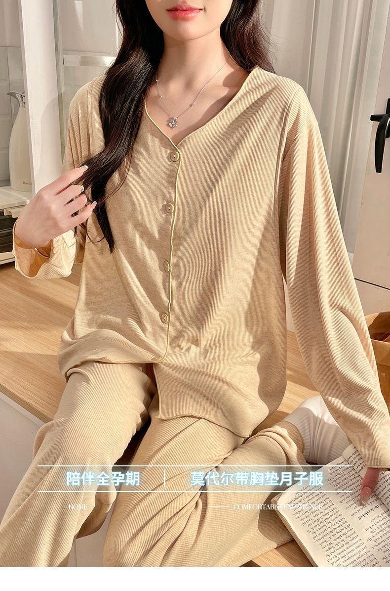 卸売り新型月子服春秋シンプル綿質長袖固定胸パッド付き妊婦産後授乳家庭服