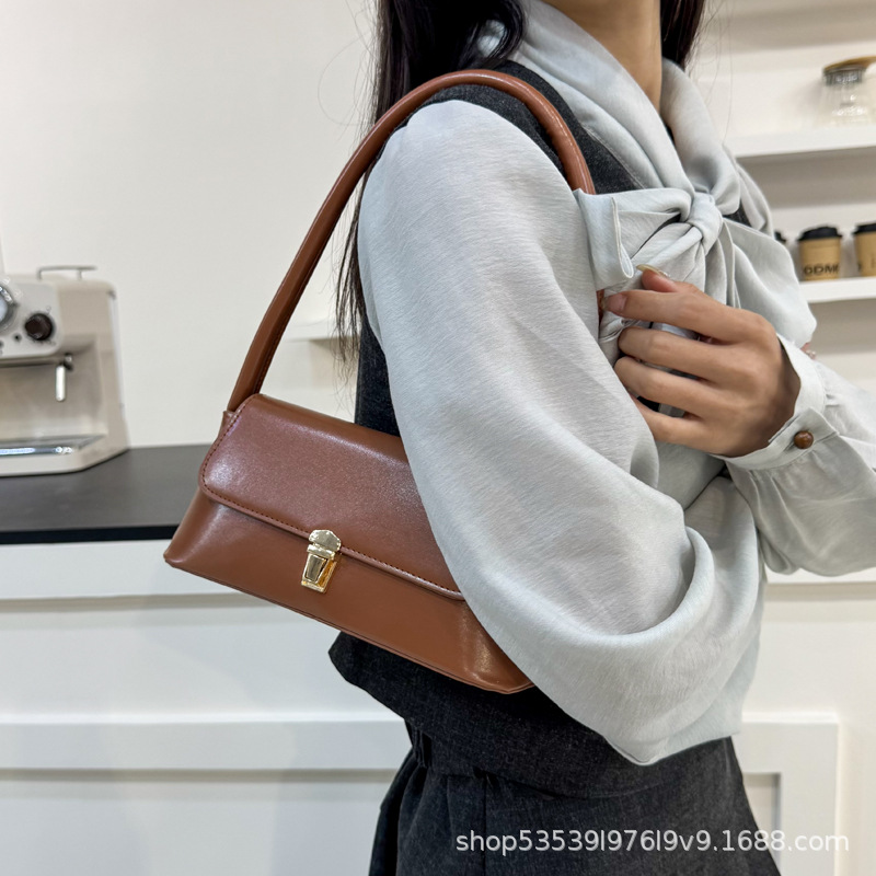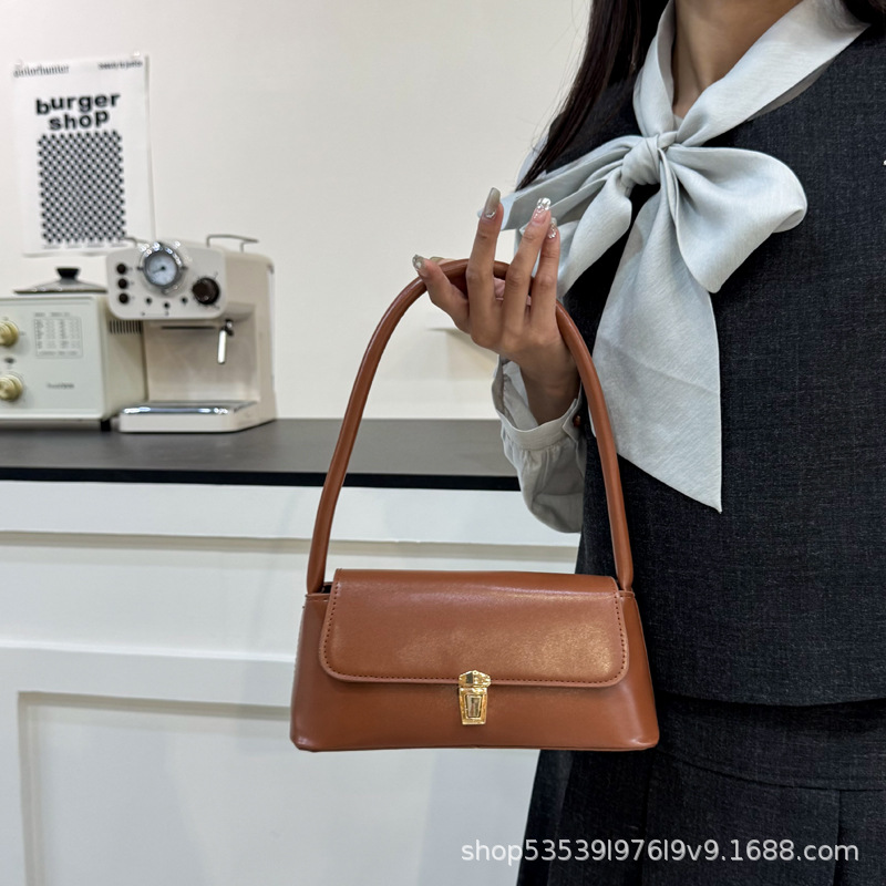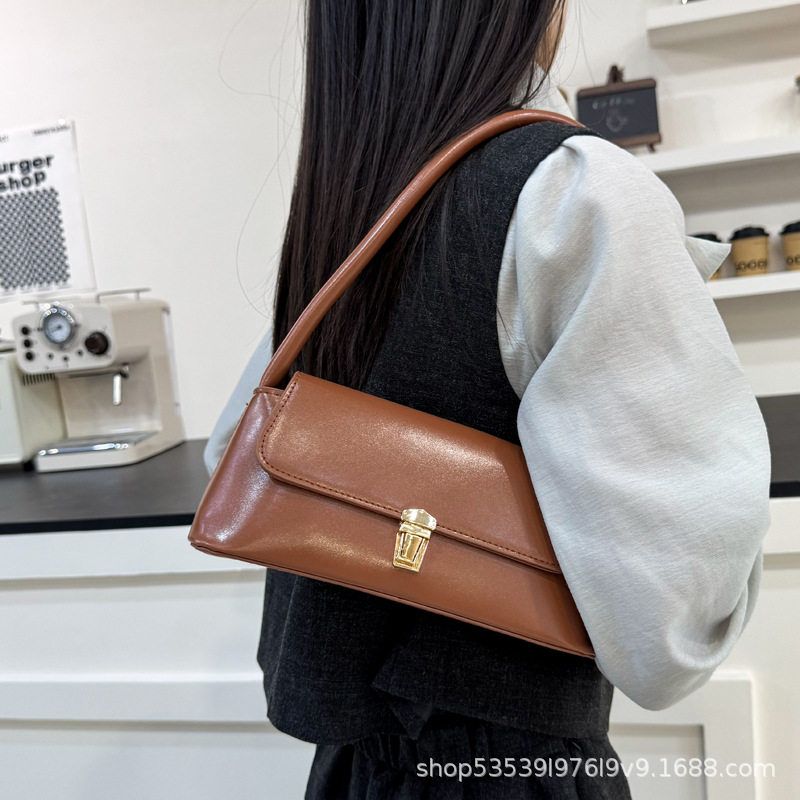 フレンチバッグ レディース 20242025 新しいファッション レトロ 多用途 シングルショルダー バゲット 脇 黒 ブラウン コーヒー色