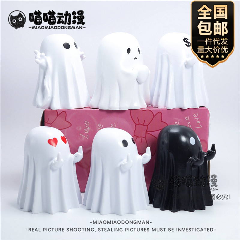 跨境新款万圣节中指幽灵手办玩具可爱桌面装饰品摆件送朋友礼物