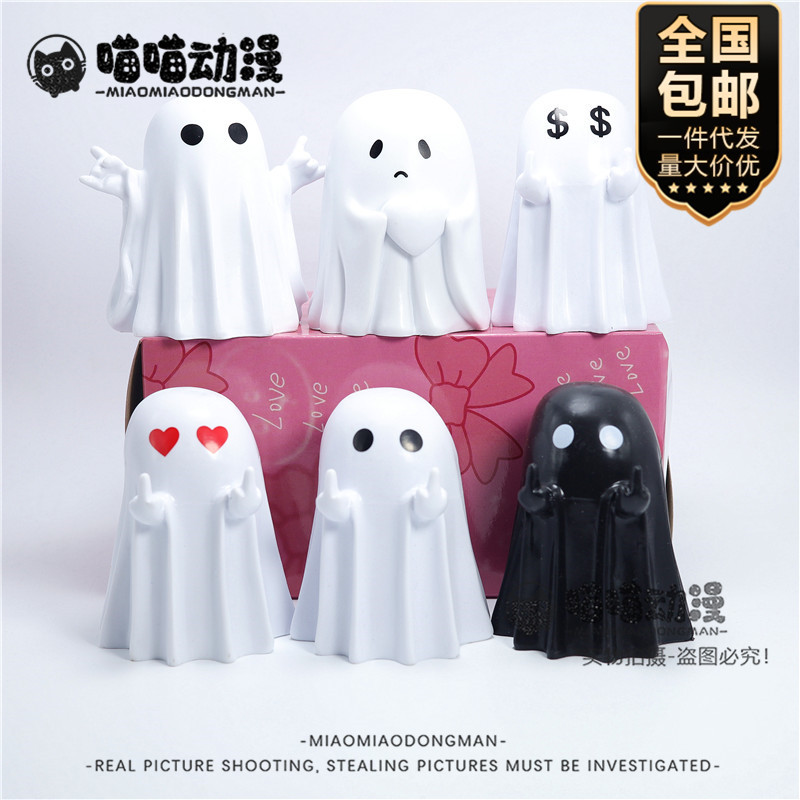 跨境万圣节幽灵手办中指创意可爱小幽灵装饰树脂工艺品家居摆件