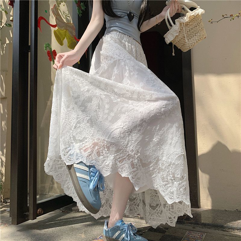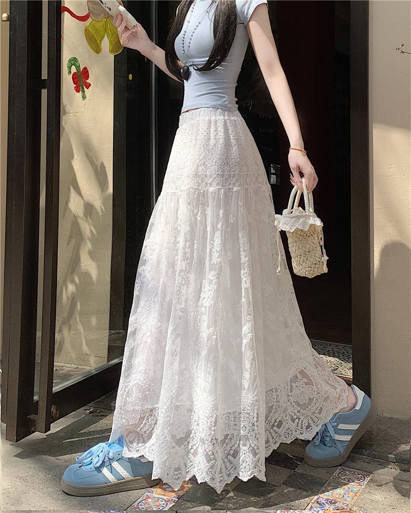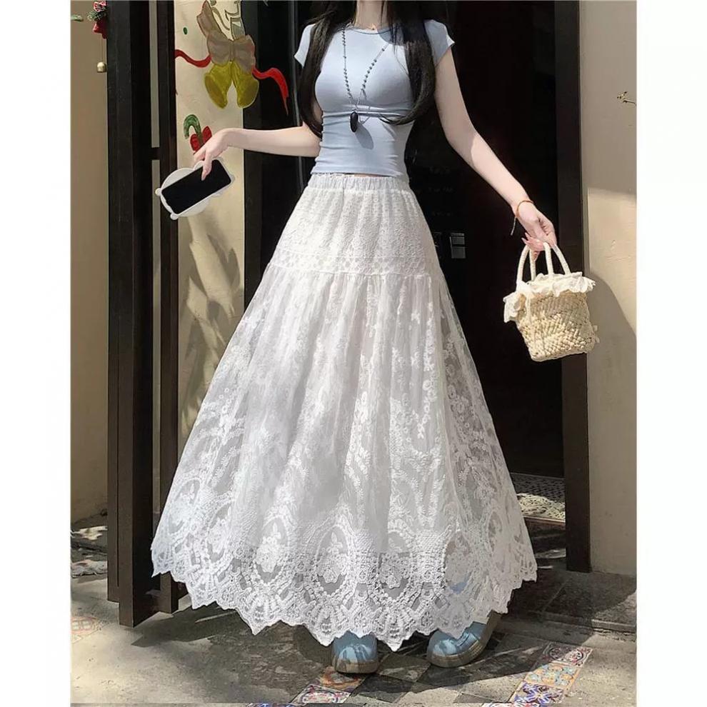 ボヘミアン休暇フック花レーススカート女性2025春夏新作透かし編みa字ロングスカート