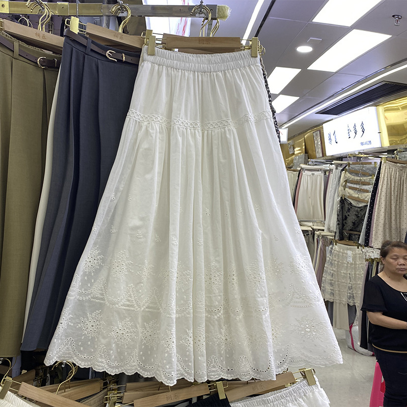 特大码300斤法式蕾丝白色钩花钩花半身裙女胖MM2025夏新款长裙ins