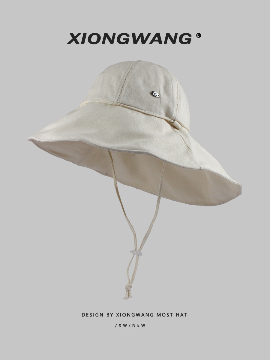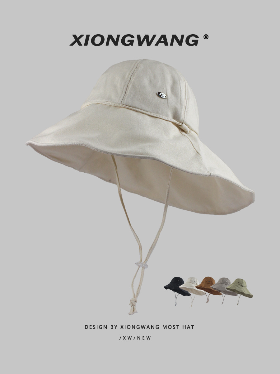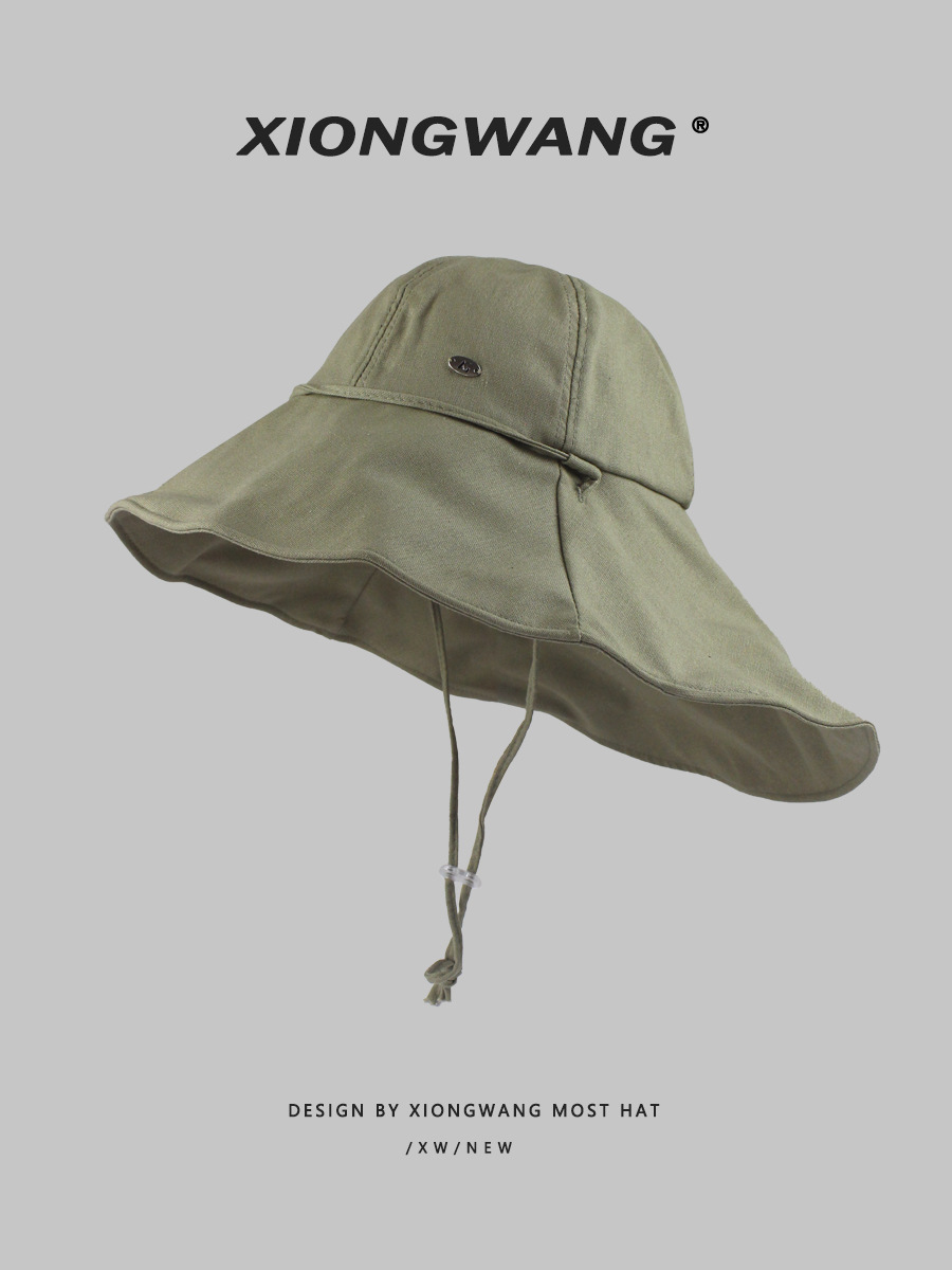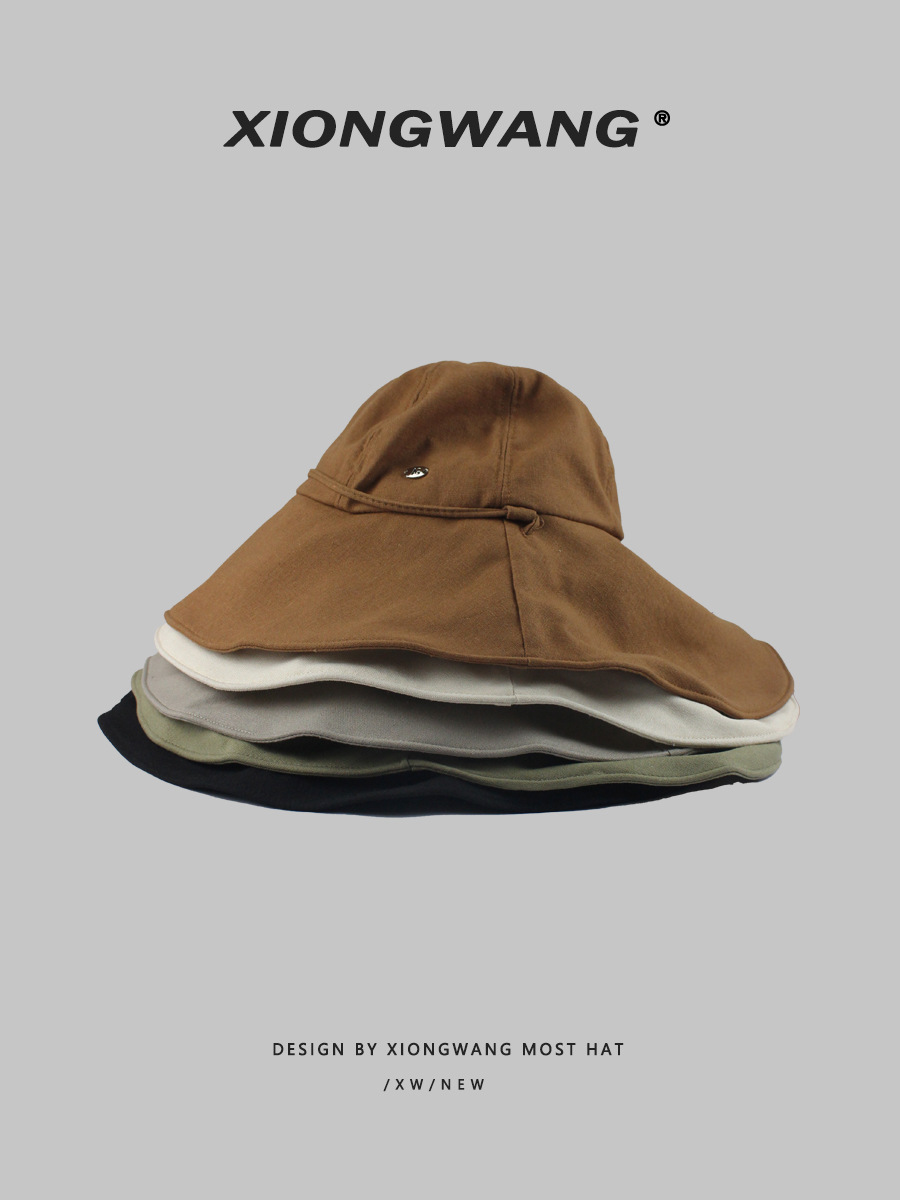 春と夏の日焼け止めビッグヘッドフィッシャーマンハット女性用、前が短く後ろが長い、紫外線防止サンハット、カジュアルで多用途な大きなつばの盆地帽子