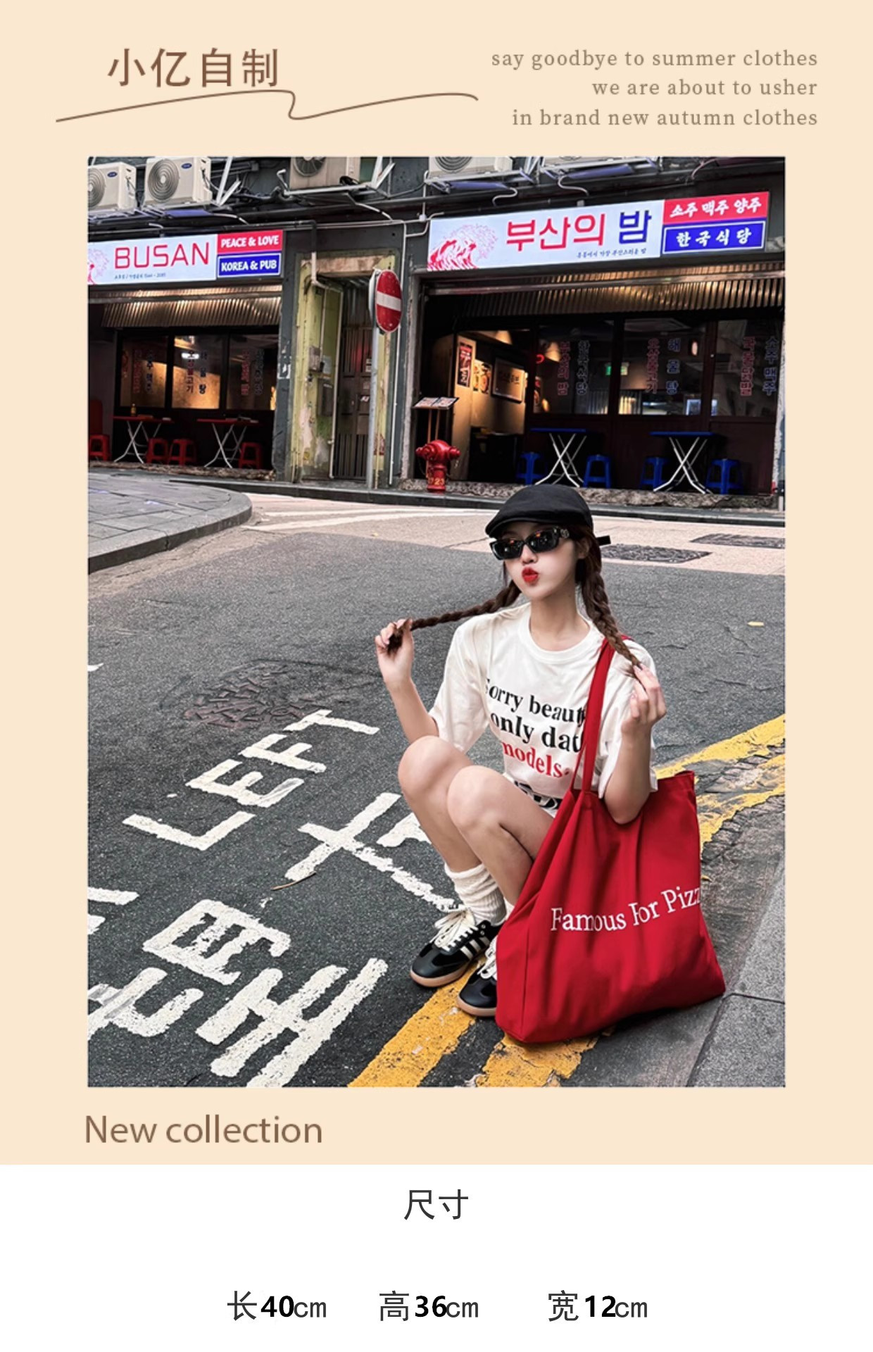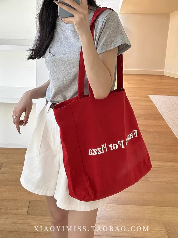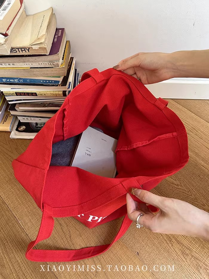 インターネットセレブと同じスタイルの黄色の怠惰なスタイルのキャンバスバッグ夏大容量通勤ショルダーバッグシンプルなポータブルショッピングバッグトレンド