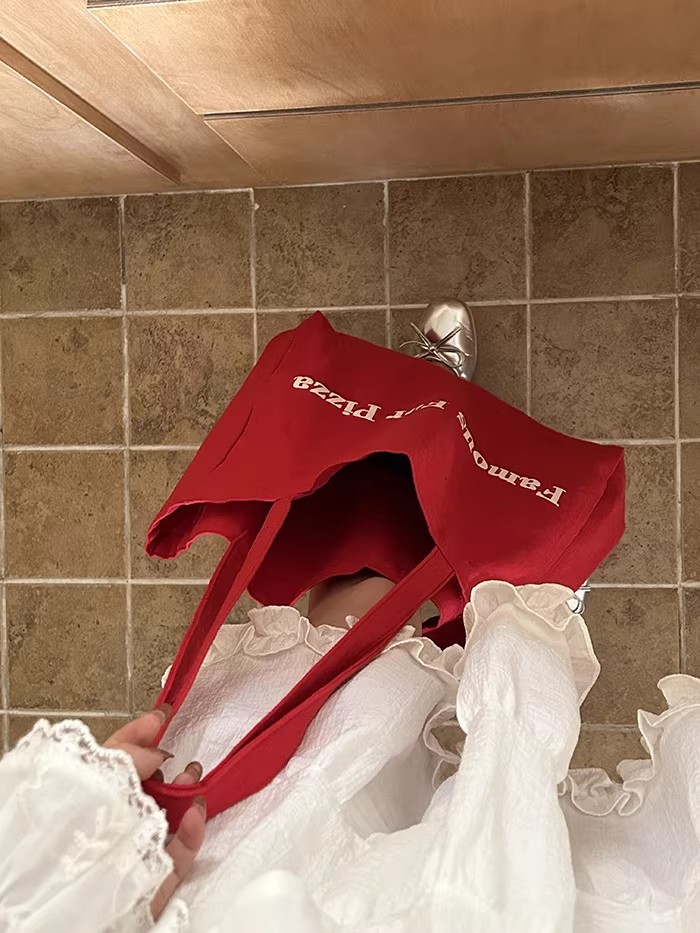 2025新型の赤いアルファベットのナイロンバッグはだらだらしています。