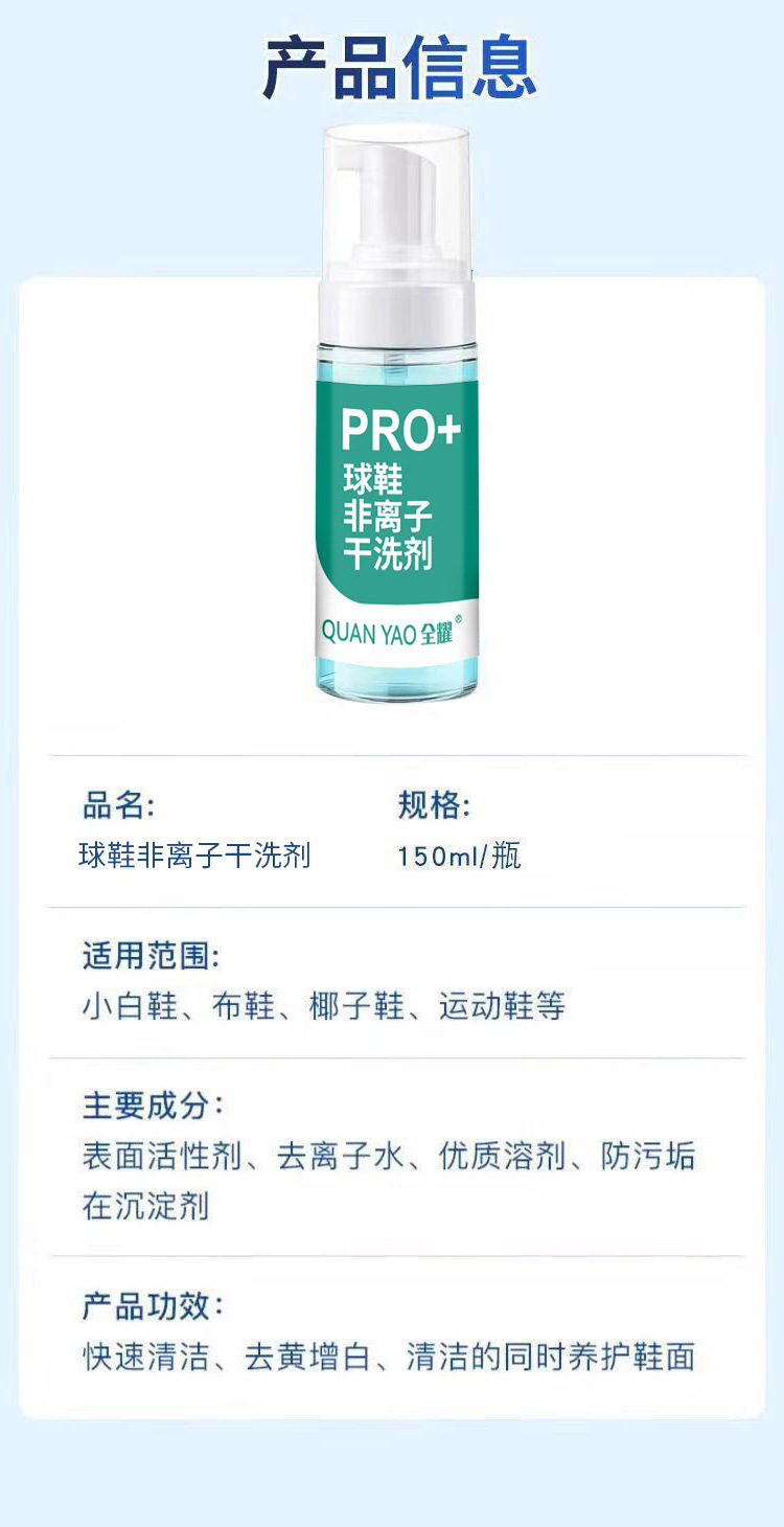 球鞋非离子干洗剂小白鞋清洁剂去污洗鞋刷鞋神器慕斯干洗泡沫免洗