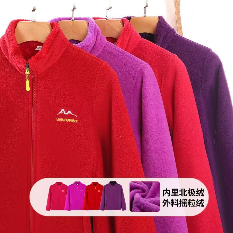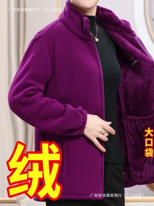 中老年女装秋冬摇粒绒外套女保暖加厚宽松大码双面绒外套女妈妈装