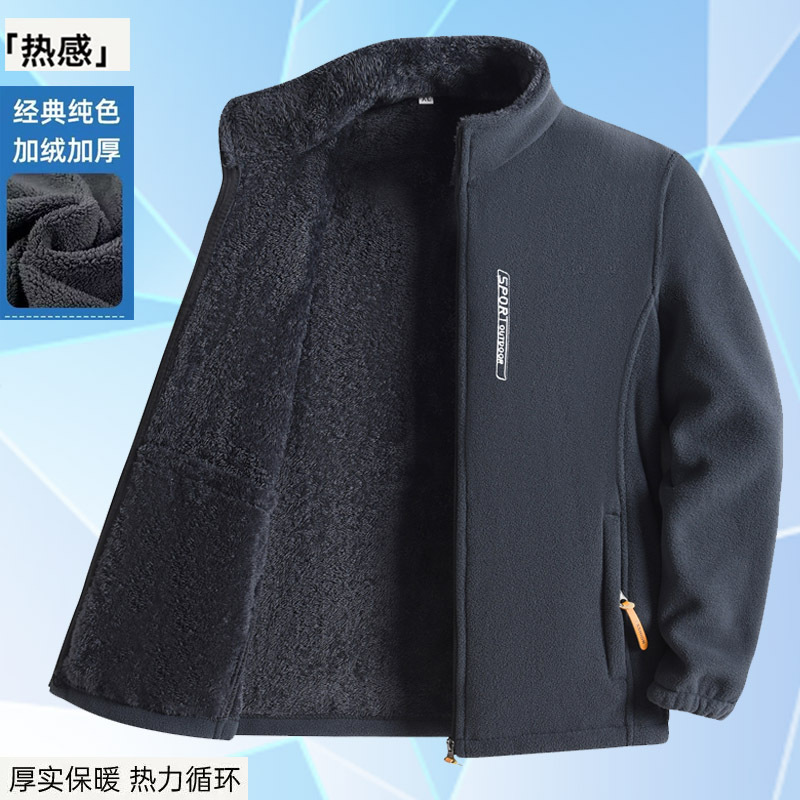 秋冬カジュアルメンズジャケット、大きいサイズフリース、メンズ保温カーディガン、スタンドカラー、裏起毛、厚手ポーラーフリースジャケット