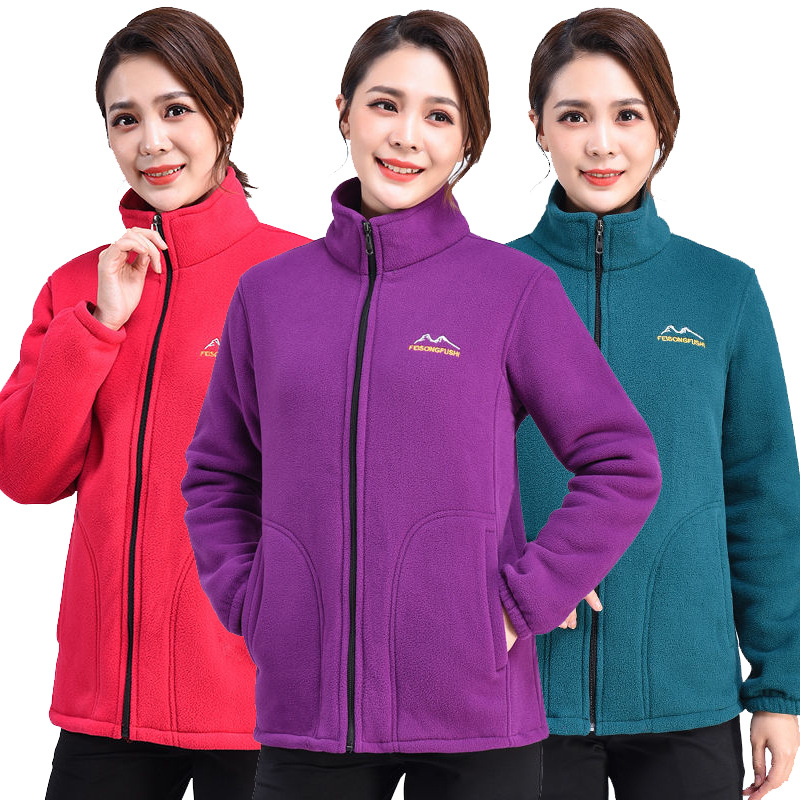 中高年向け新作ゆったりジップアップフリースジャケット レディース秋冬用ポーラーフリーストップス カーディガン メーカー卸売