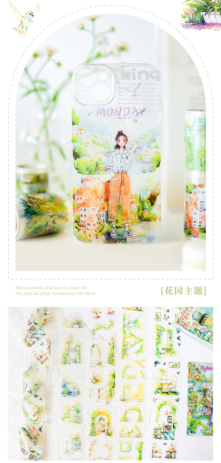 リズム悠々と透明防水petテープセットdiy手帳日記貼り絵クロスボーダー田園風景造景貼り