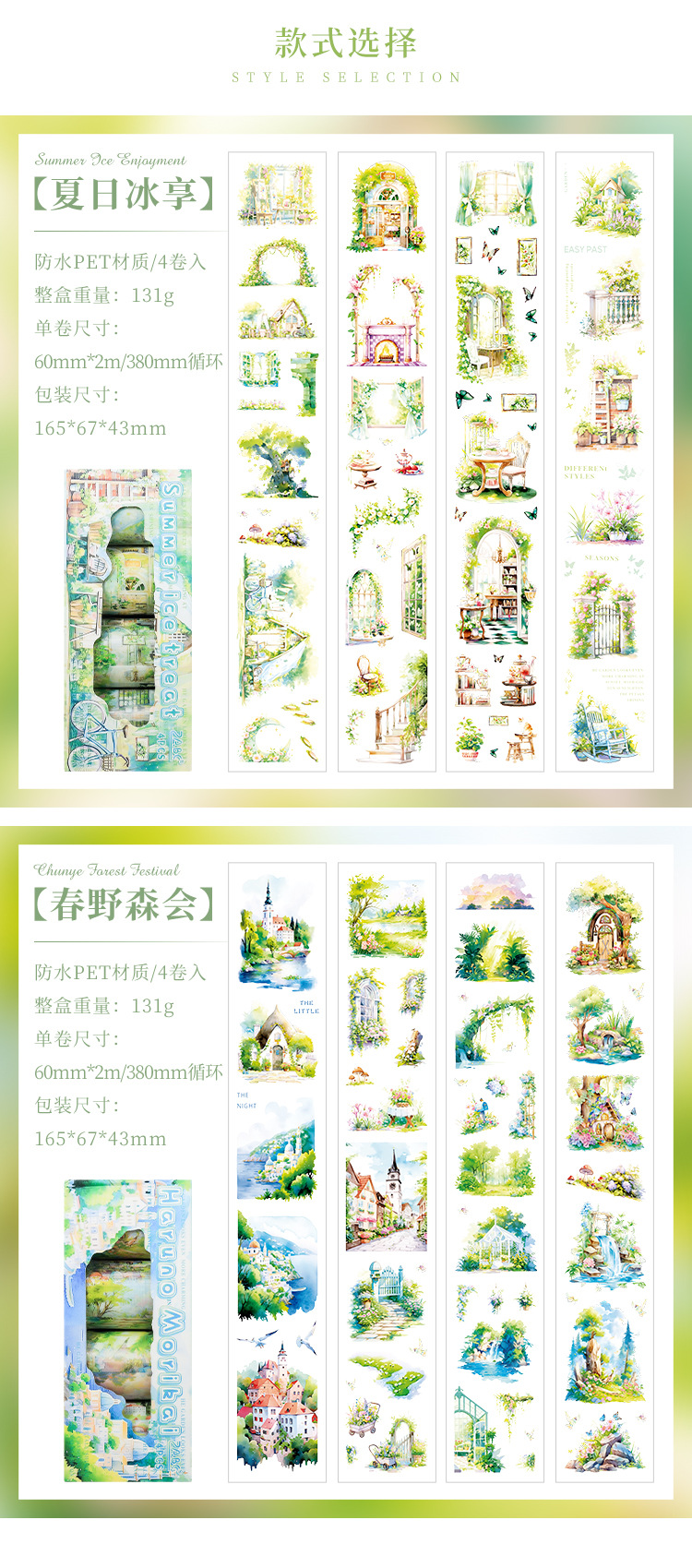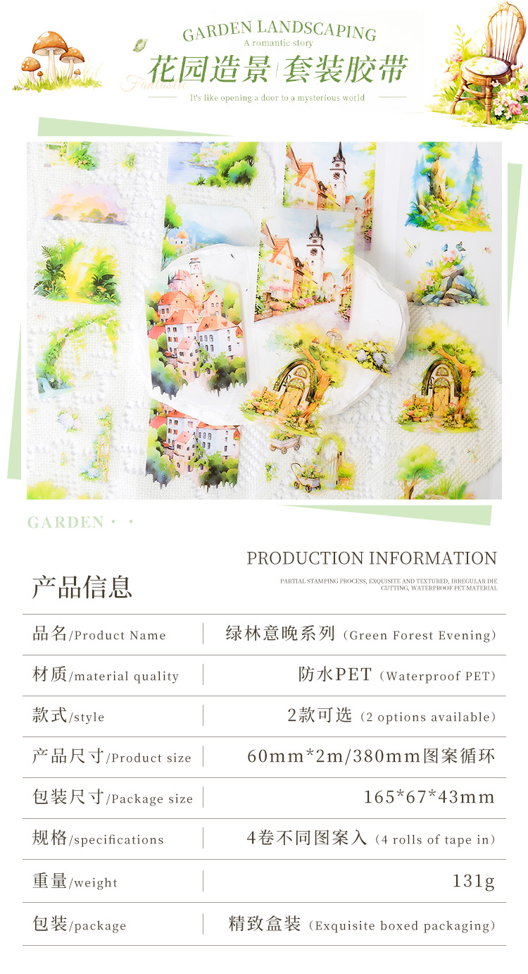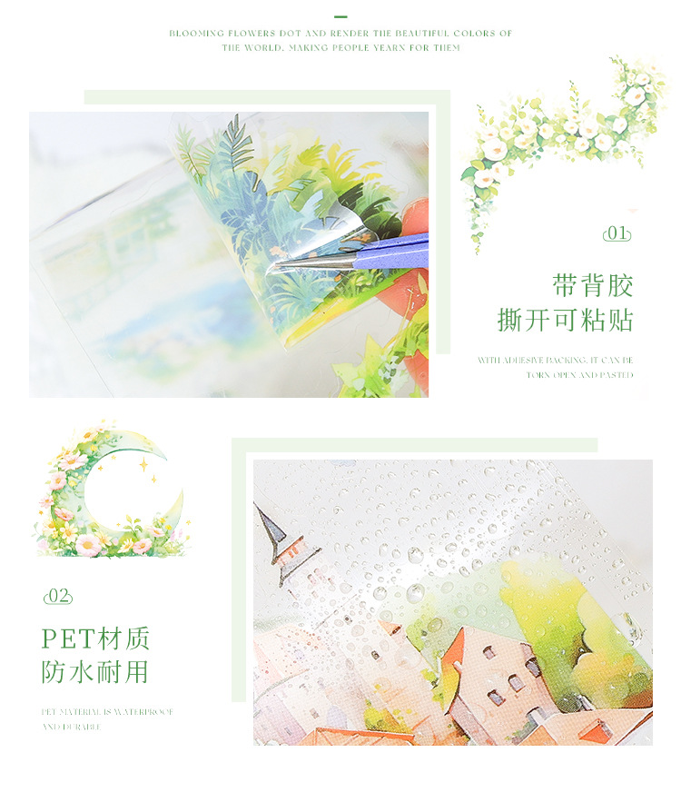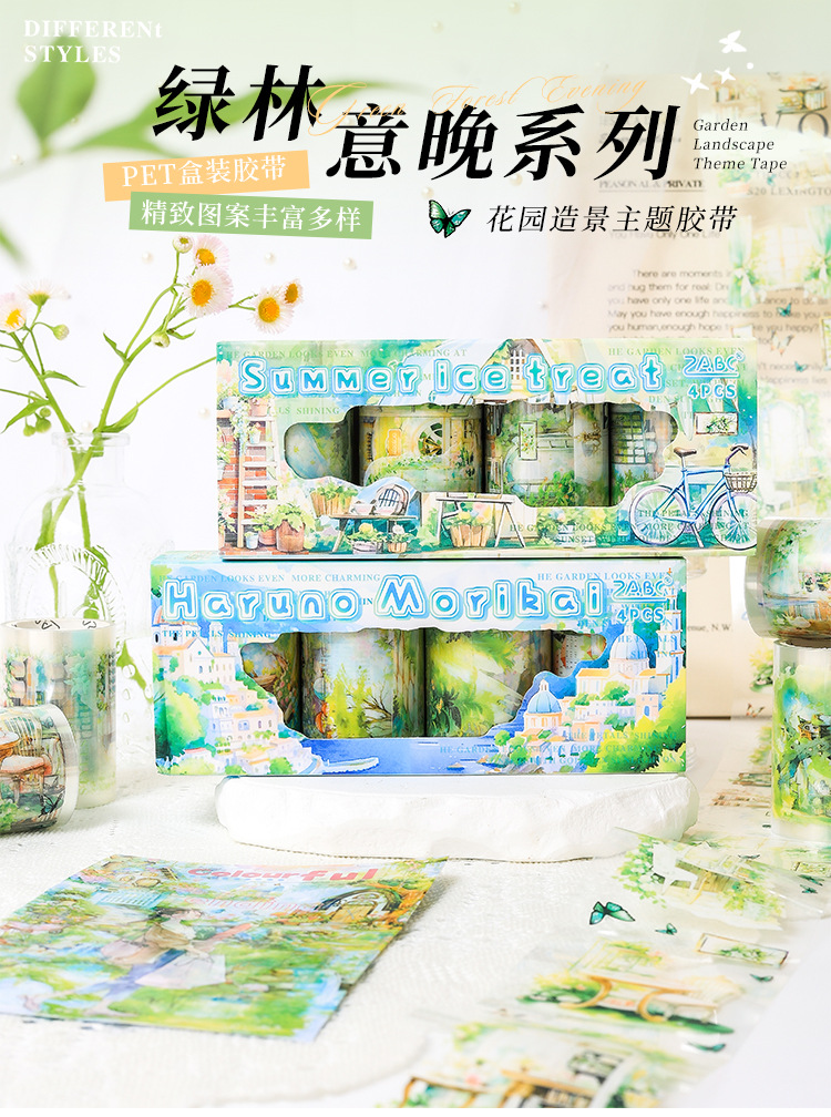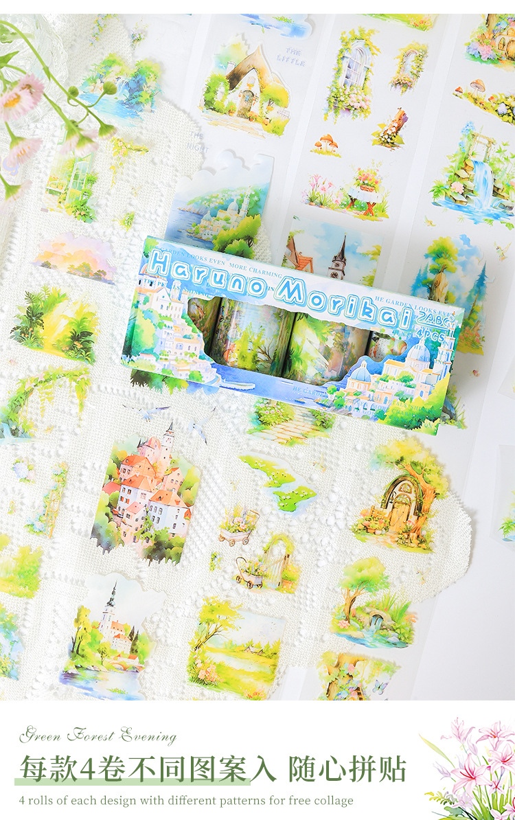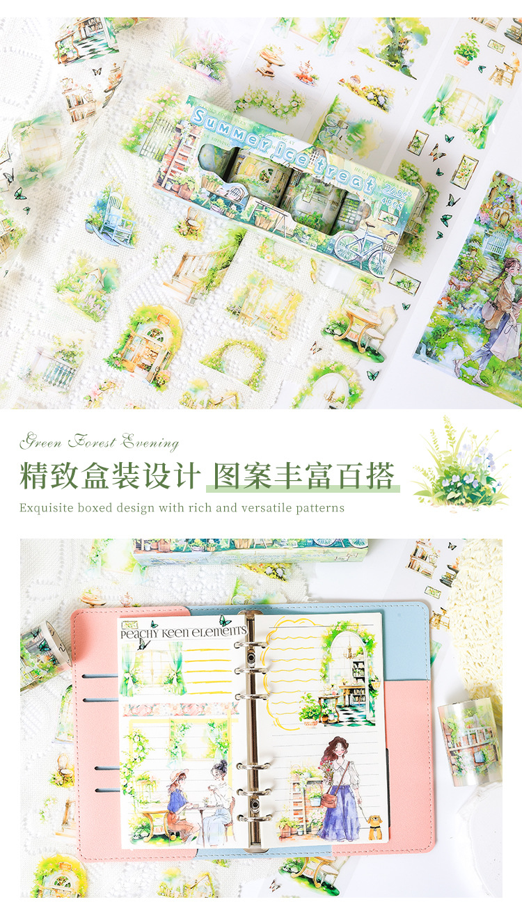 緑林意晩透明防水petテープセットdiy手帳日記造景貼り絵クロスボーダー田園ヨーロッパ式貼り