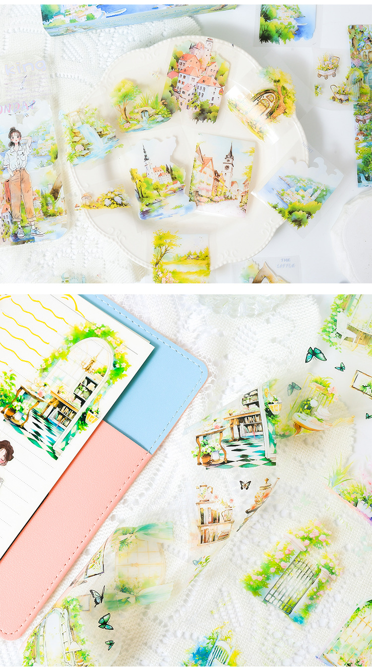 山野清広々とした透明防水petテープセットdiy手帳造景貼り画クロスボーダーヨーロッパ風レトロ建築貼り