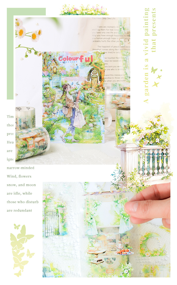 Liuyunluoying 透明防水ペットテープセット diy ハンドブック日記ステッカークロスボーダー田園の新鮮な風景ステッカー