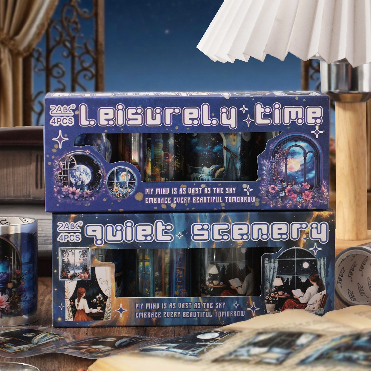 夜空寂静pet模切美丽星空手账胶带套盒diy手账日记素材装饰贴画