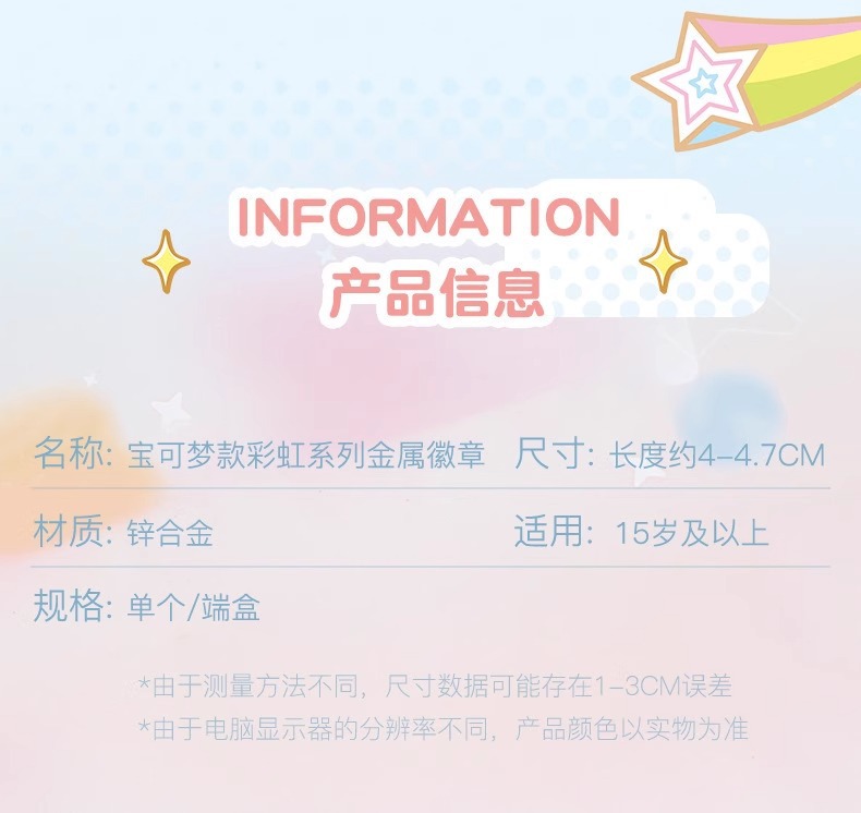 ポケモンレインボーシリーズメタルバッジピカチュウアニメ周辺機器ポケモンブローチクリエイティブギフト