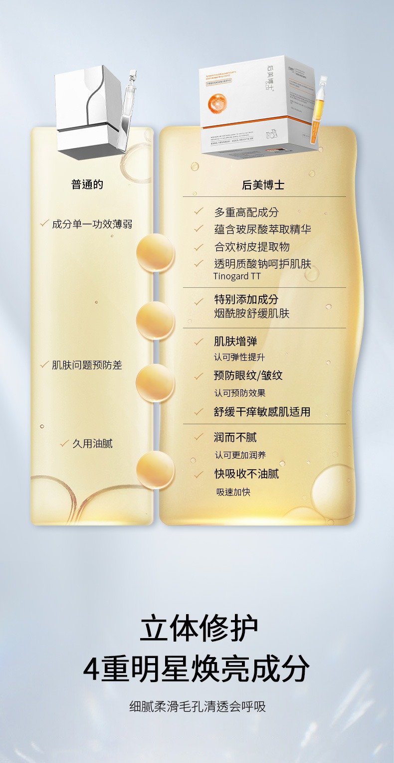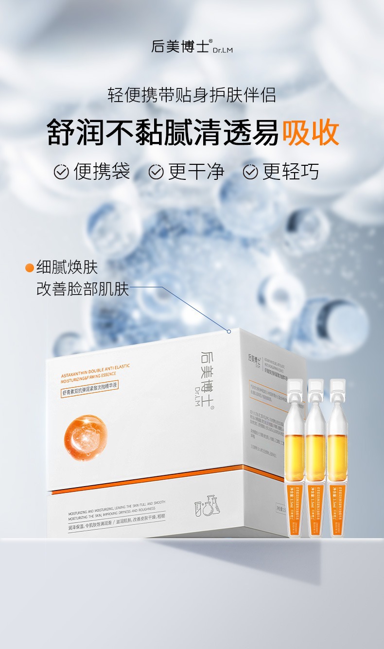 Dr. Houmei のアスタキサンチン ダブル アンチエイジング ファーミング セカンド ポージング エッセンスは、肌に潤いを与え、毛穴を縮小し、肌に栄養を与えます。