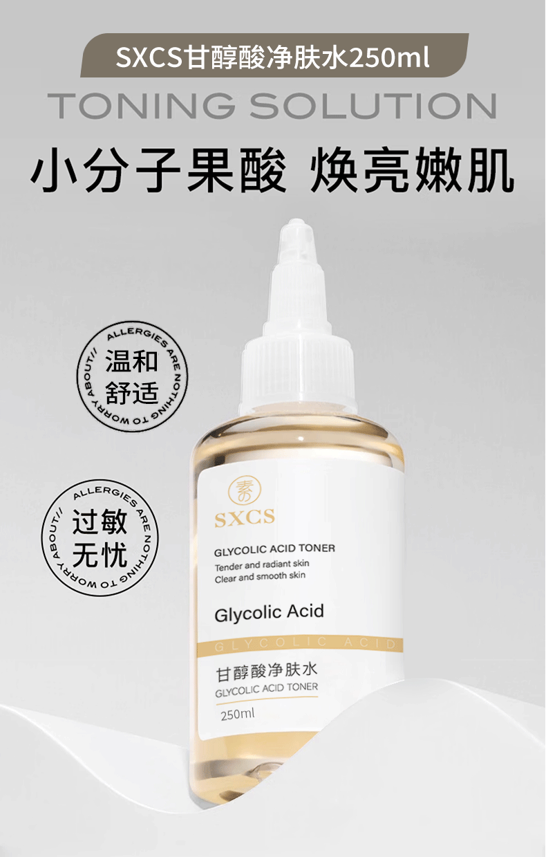 Su Xiuchen のグリコール酸浄化水、クレンジングと保湿トナー、若返りと輝き、閉じた口を改善するフルーツ酸湿布水