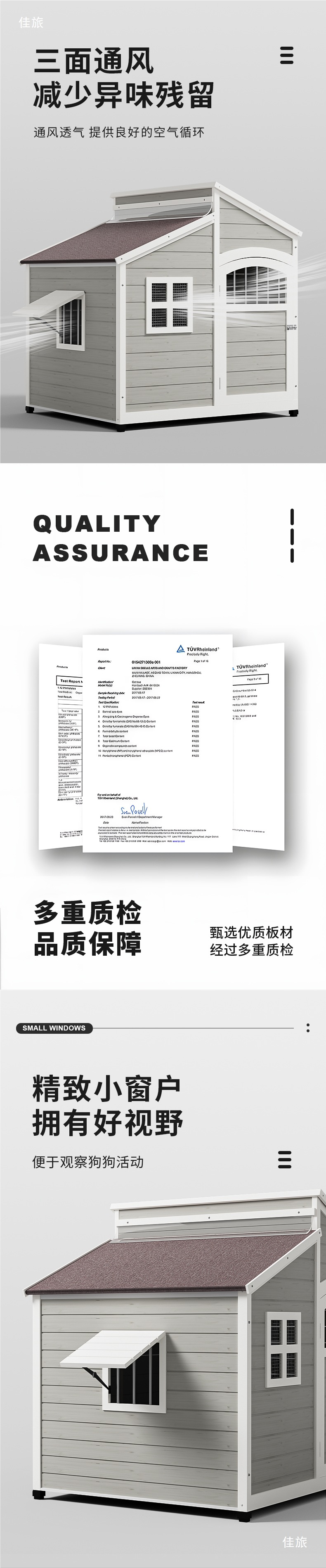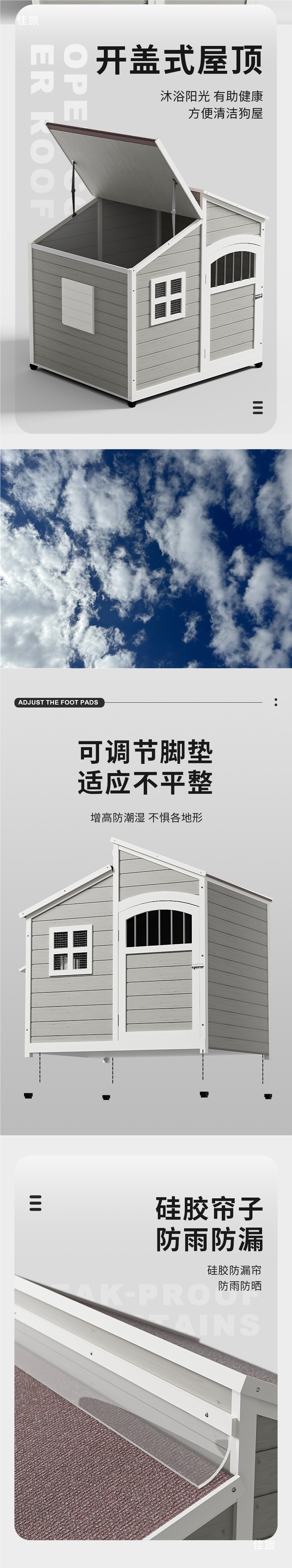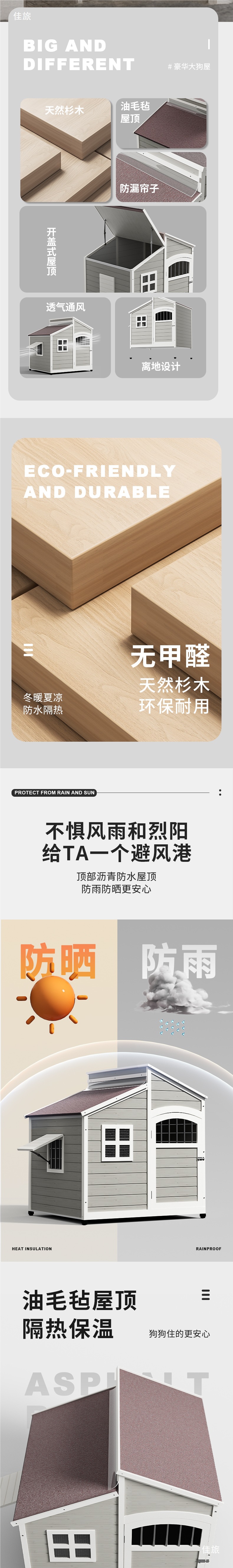 無垢材の犬小屋、屋外大型犬小屋、屋外防雨防寒中庭犬小屋、ヴィラ、オールシーズン対応