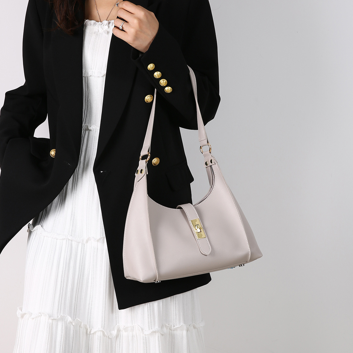 韓国系の高級な質感の包みの女性の2024秋の新商品のファッションの百合のシンプルな肩の脇の下の包みの新月の包みの女性