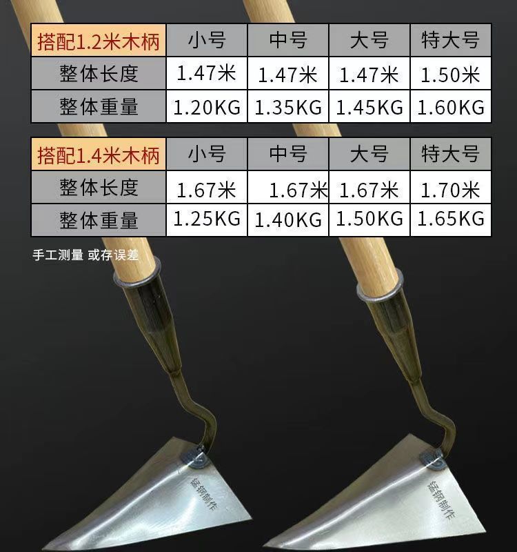 仕様 【グレードアップマンガン鋼】小型溝鍬,【グレードアップマンガン鋼】中型トレンチホー,【グレードアップマンガン鋼】大型溝鍬,【グレードアップマンガン鋼】特大溝鍬,【精鉄鋳物】ミニ溝掘り三日月シャベル