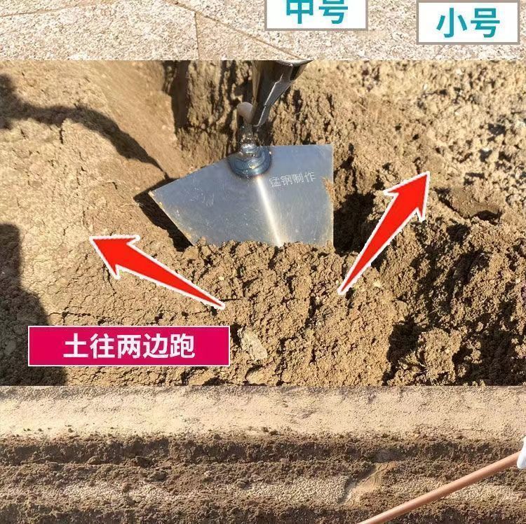 農具道具大全家庭用野菜の三角溝を作る鍬の先の小さい鋤は農業用の土をひっくり返してマンガン鋼の三角鋤を緩めます。