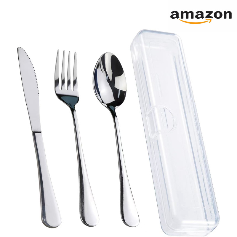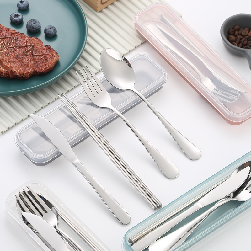 クロスボーダー Amazon ステンレス鋼食器 4 ピース旅行用品ポータブル食器ボックス付きフォークスプーンナイフセットシルバー