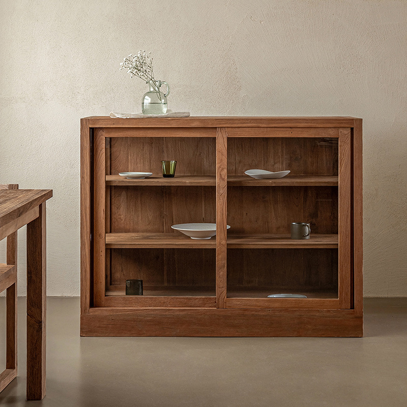 家用侘寂风榆木餐边柜实木客厅靠墙茶水柜民宿餐厅玻璃储物收纳柜