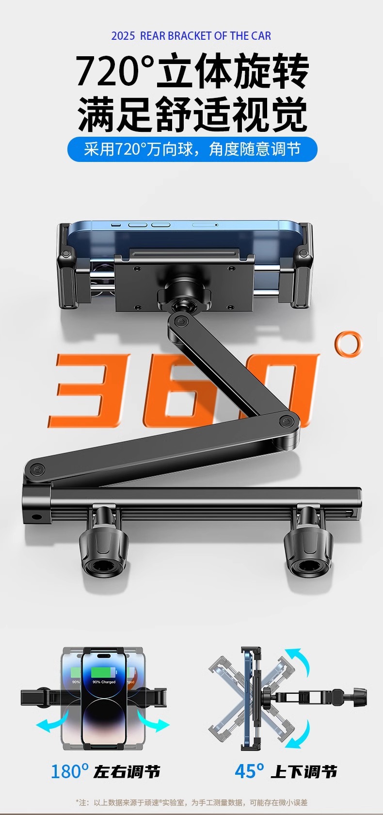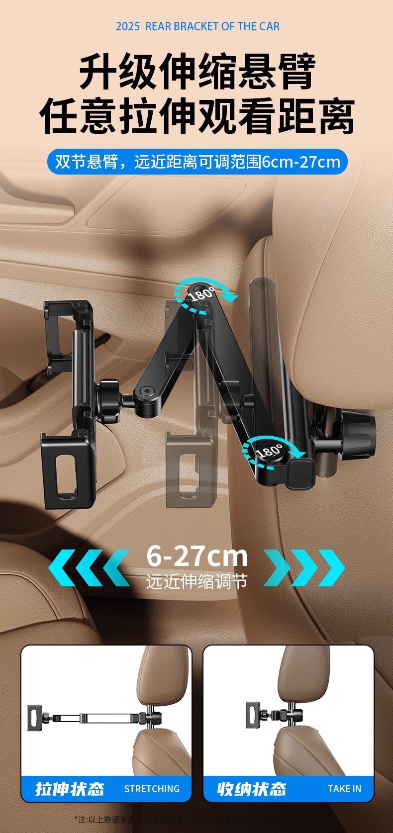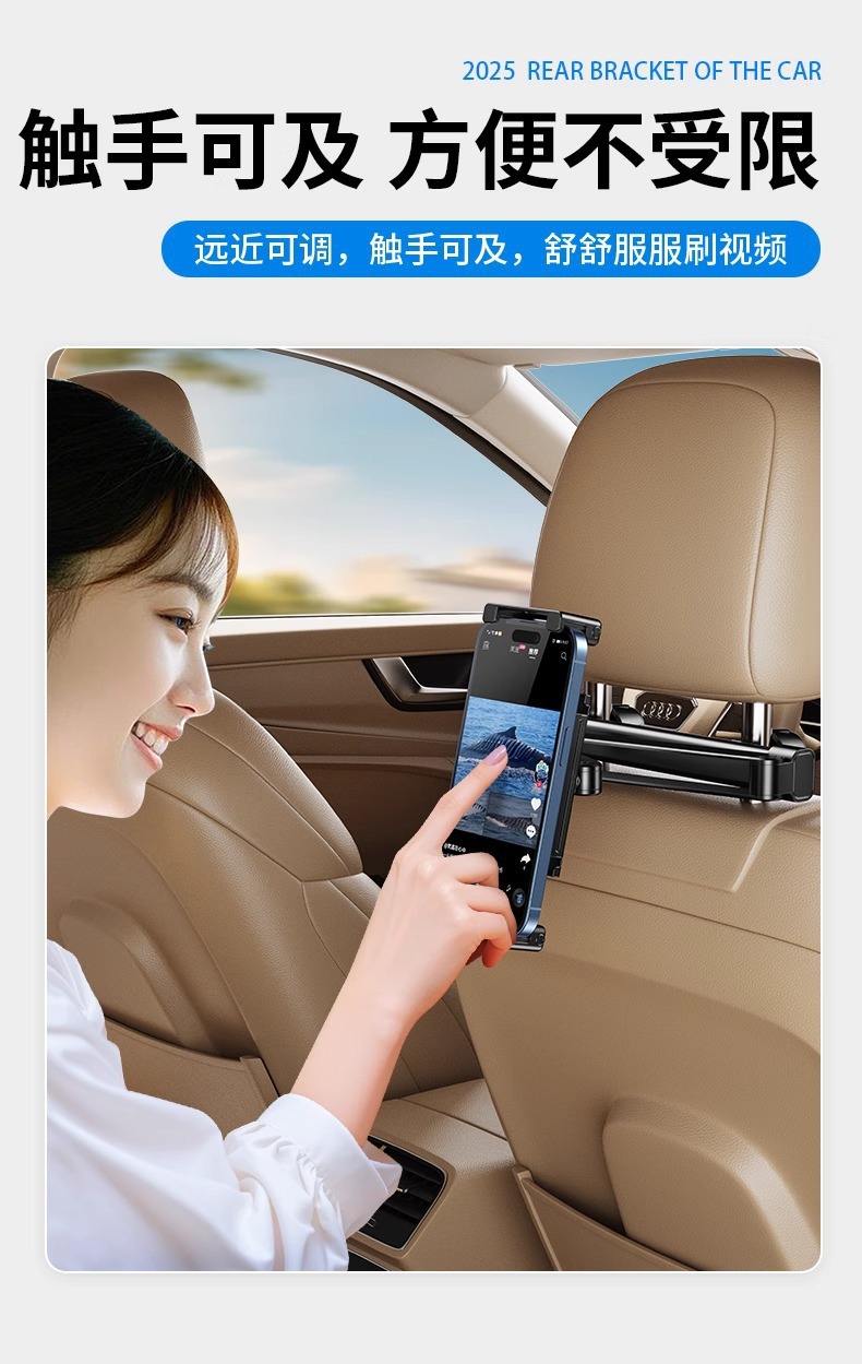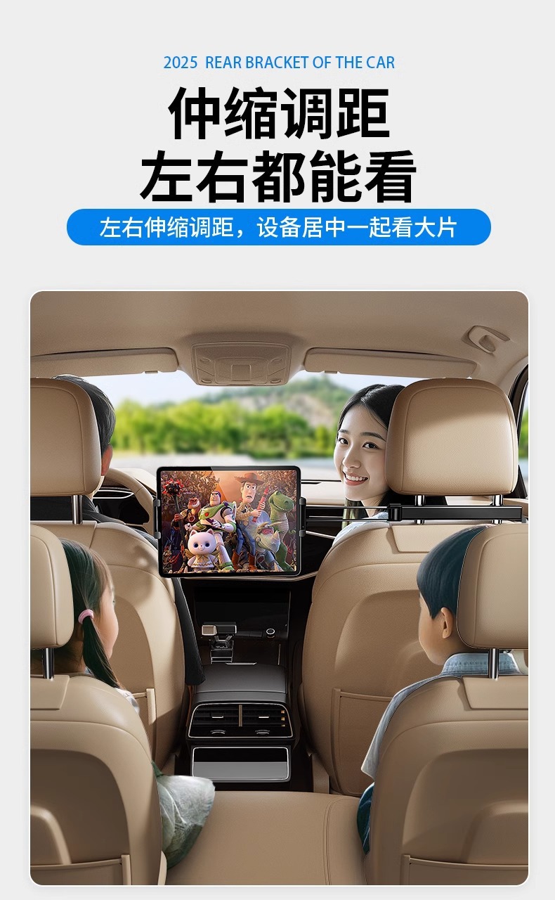 2026新品车载后排可伸缩调节支架汽车后座平板手机通用固定架批发